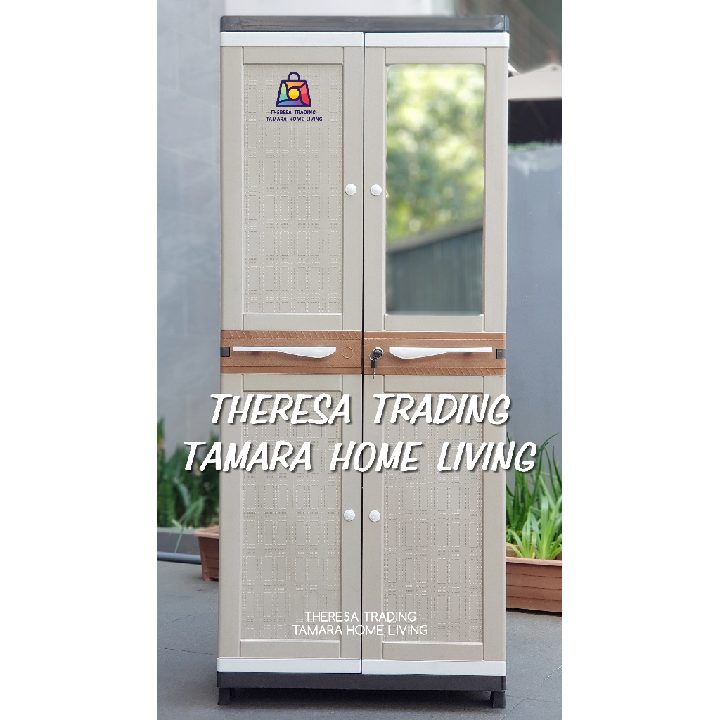 LEMARI PLASTIK CLUB GRAND COMPACT KACA 4 CERMIN SUSUN 4 DI LENGKAPI KUNCI PINTU LEMARI