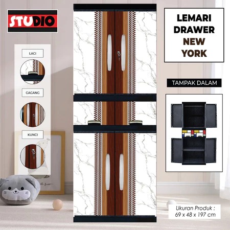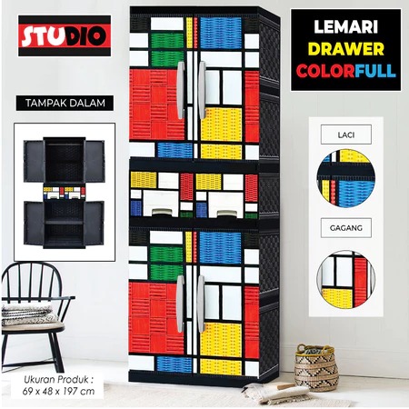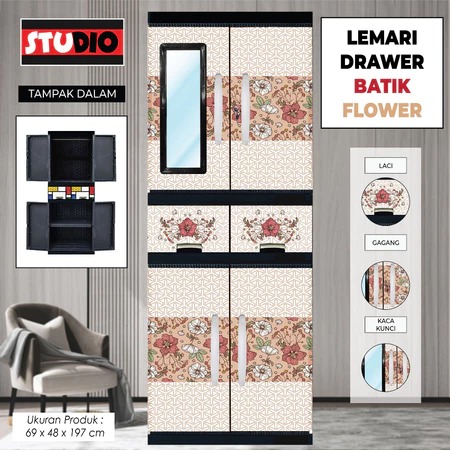 Lemari - rak baju - Lemari Pakaian Jumbo Unique Drawer 2 Pintu Motif Seni Gantung + Kaca