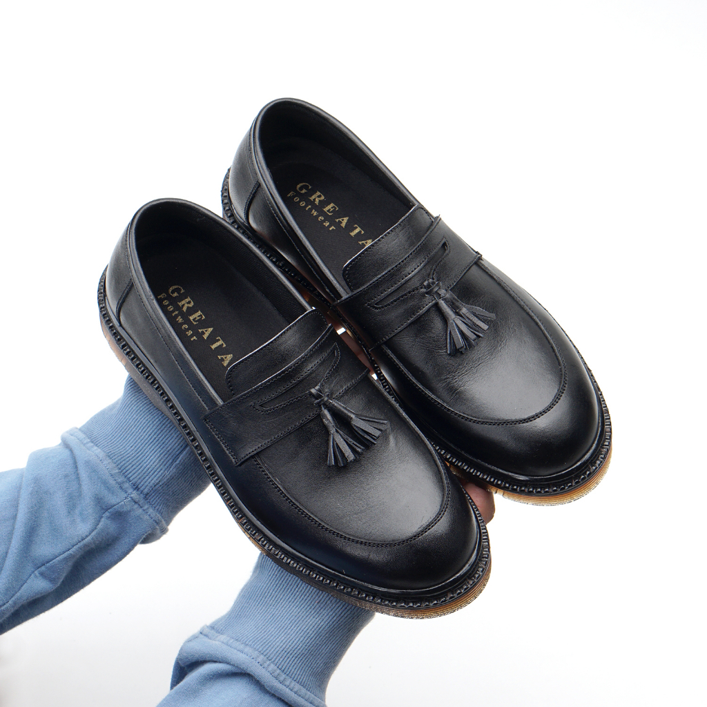 OSCAR BLACK |MNM x Greata| Sepatu Loafers Pria Docmart Formal Shoes Pantofel Kantor / Kerja ORI