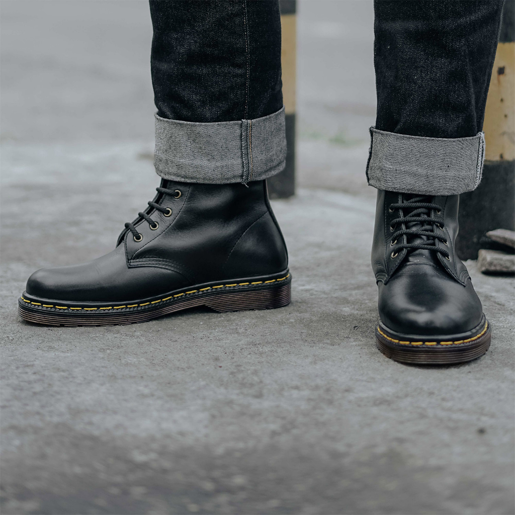 Athar Hamorii - Sepatu Boots Pria Docmart Hitam Kulit Asli