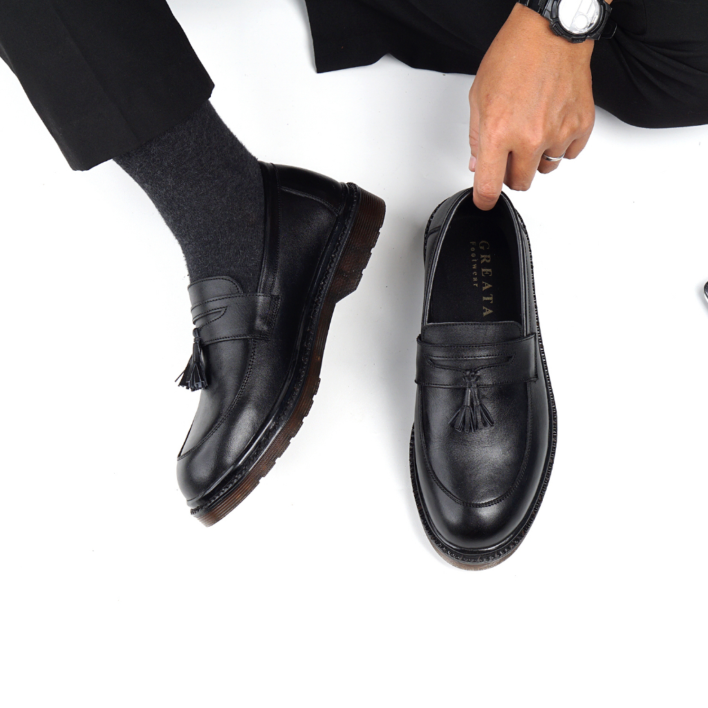 OSCAR BLACK |MNM x Greata| Sepatu Loafers Pria Docmart Formal Shoes Pantofel Kantor / Kerja ORI