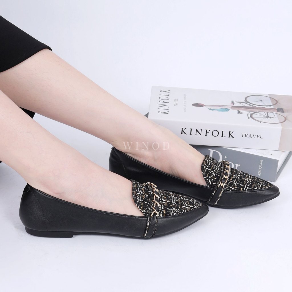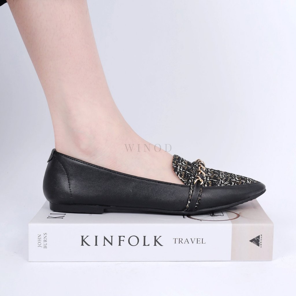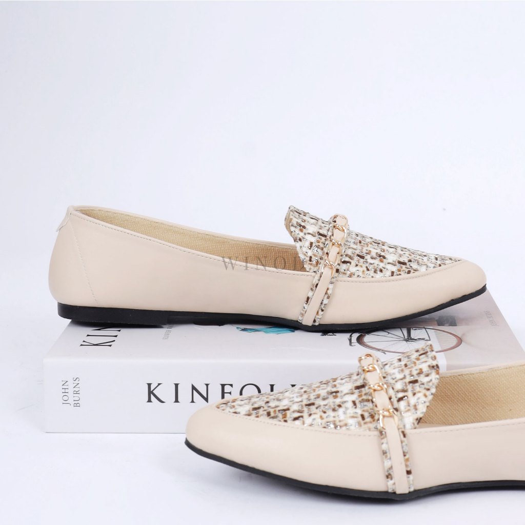 ENZI FLATSHOES SEPATU KERJA WANITA MODEL TWEED CASUAL DAILY