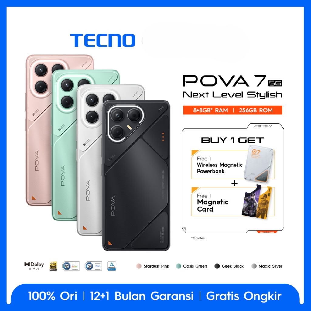 [Star] TECNO POVA 7 5G 8+8GB*/256GB, 6000 mAh, Mediatek D7300 Ultimate, 144Hz Smooth Display , 50MP Primary Camera, Wire