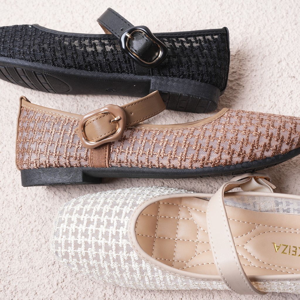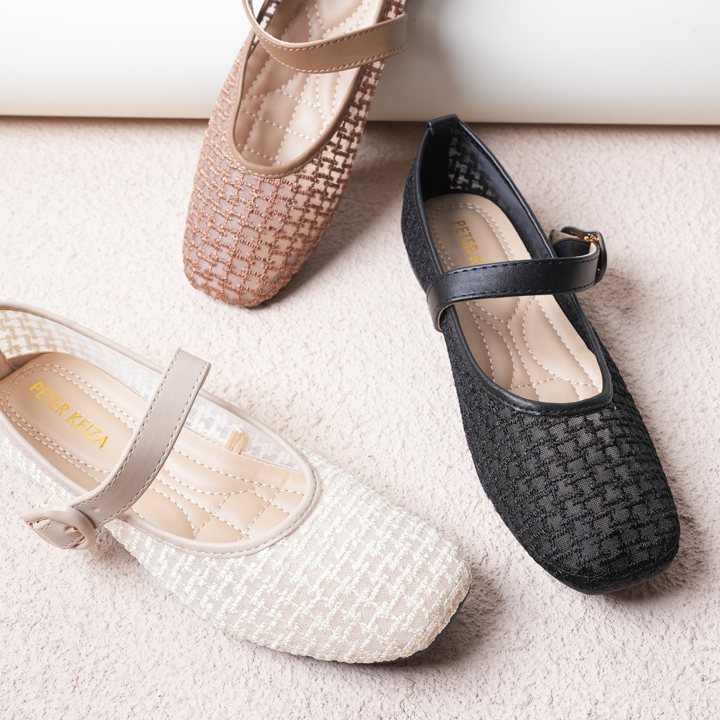 SEPATU BALET FLAT JARING TALI TENGAH BAHAN TWEED DOUYIN STYLE PAT5-11