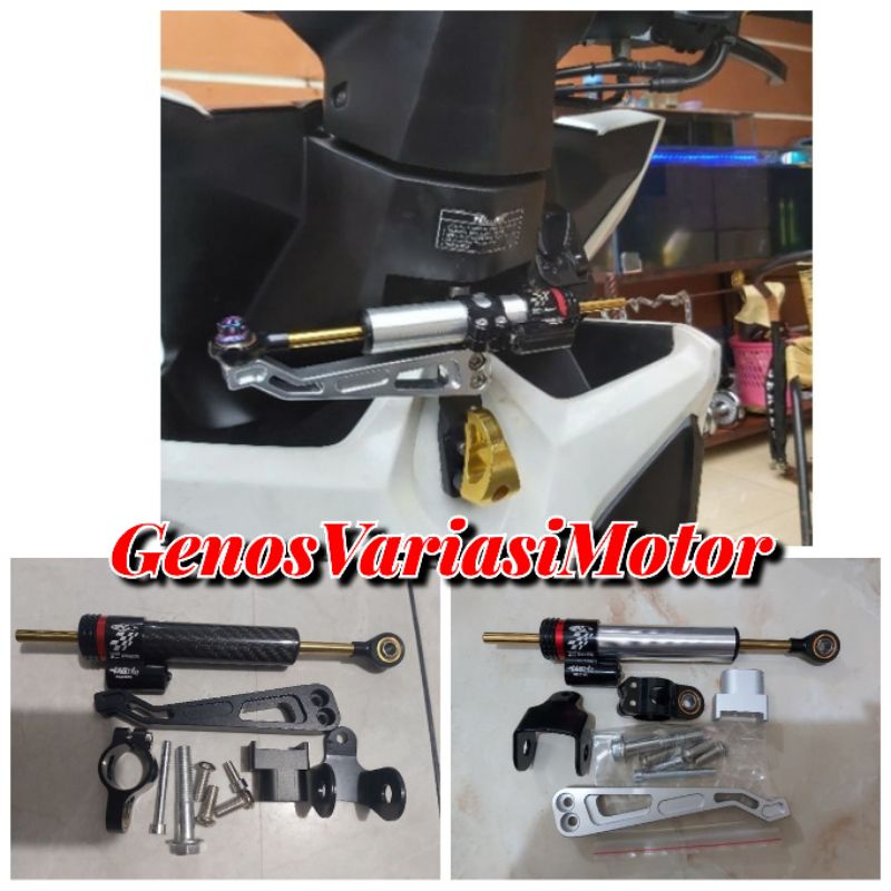 Paket Stabiliser Matris Carbon 16 Click + Breket Steering Dumper Cnc Untuk Bebek dan Matic UNIVERSAL