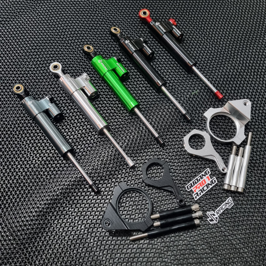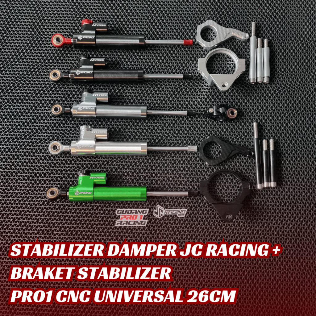 STABILIZER DAMPER JC RACING + BRAKET STABILIZER PRO1 CNC UNIVERSAL 26CM