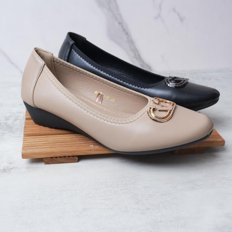 SEPATU WEDGES WANITA EMPUK DENGAN METALLIC BADGE TINGGI 3 CM PAS17-2
