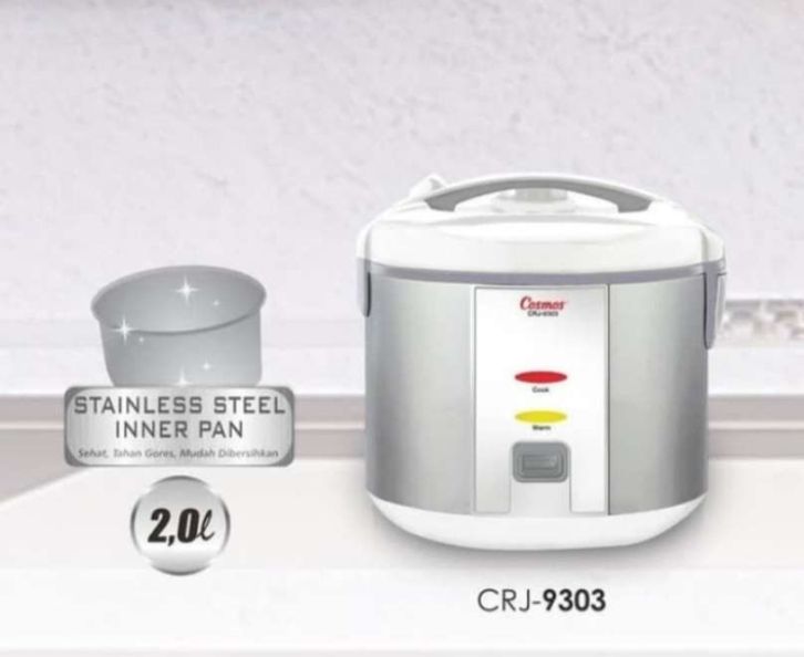 (GRATIS) COSMOS CRJ-9303 STAINLESS STEEL RICE COOKER 2 LITER PENANAN NASI MAGIC COM MEJI KOM MEJIKOM MAGIKOM NASI RAIS K
