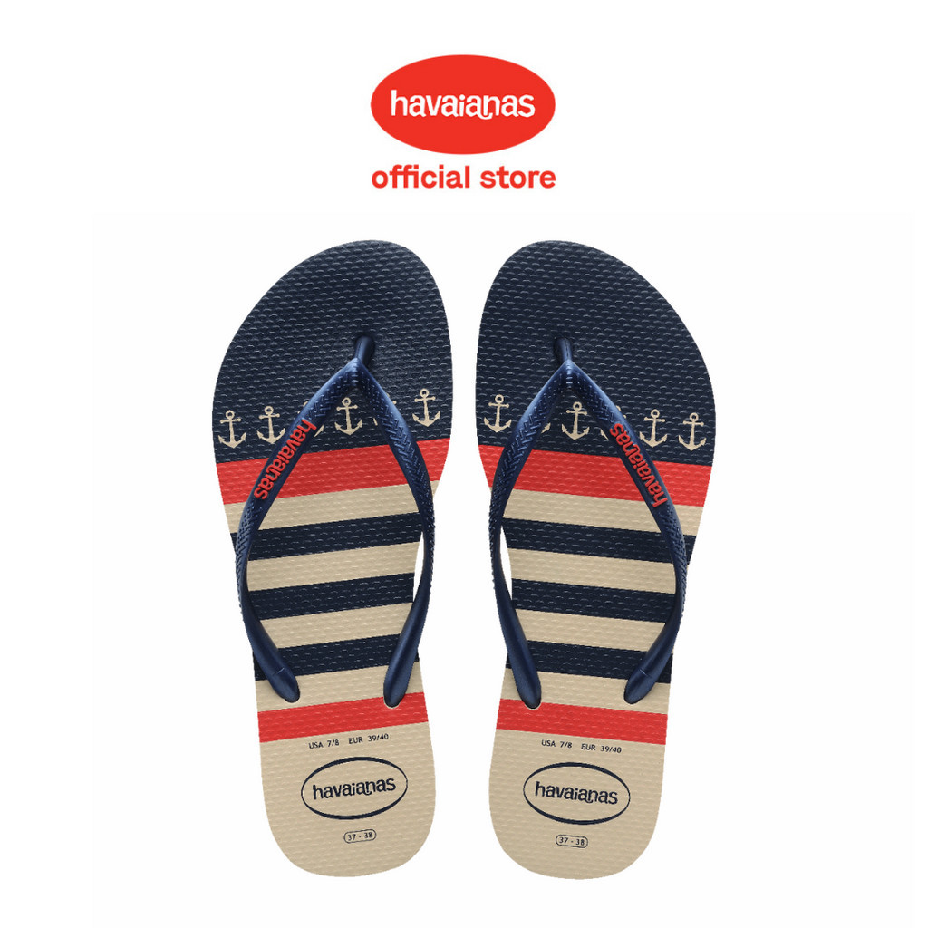 HAVAIANAS 8009 SLIM NAUTICAL - BEIGE/NAVY BLUE - SANDAL WANITA