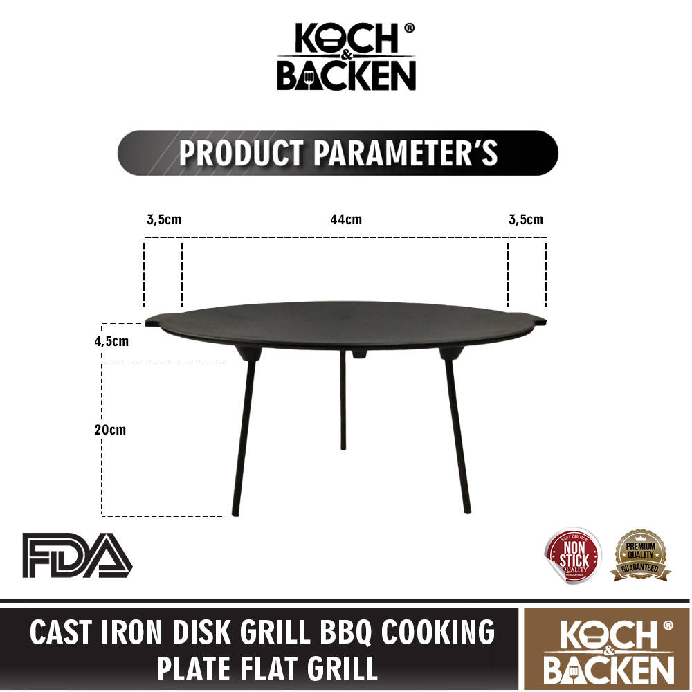 KOCH&BACKEN Cast Iron Camping Grill BBQ Cooking Plate Flat Grill Pan - Wajan Panggangan Piknik