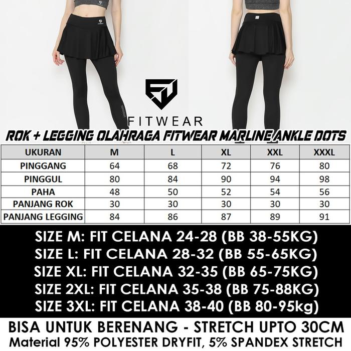 Fitwear - Rok + Legging Olahraga Padel Wanita MARLINE ANKLE DOTS - BLACK - M - 2XL Celana Outdoor
