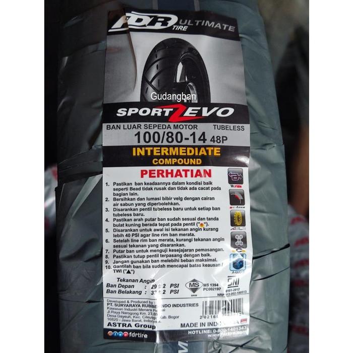 BAN MOBIL FDR Sport ZEVO 100 80 14 Tubeless Ban Luar Motor Matic TERLARIS