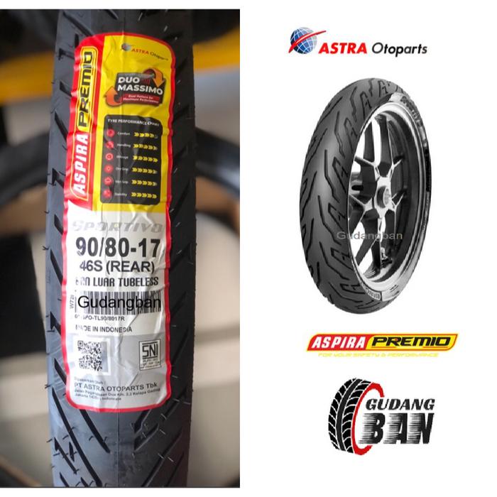 BAN MOBIL ( RING 17) REAR 90 / 80 - 17 Aspira Premio Sportivo Ban Luar Motor bebek Tubeless FREE