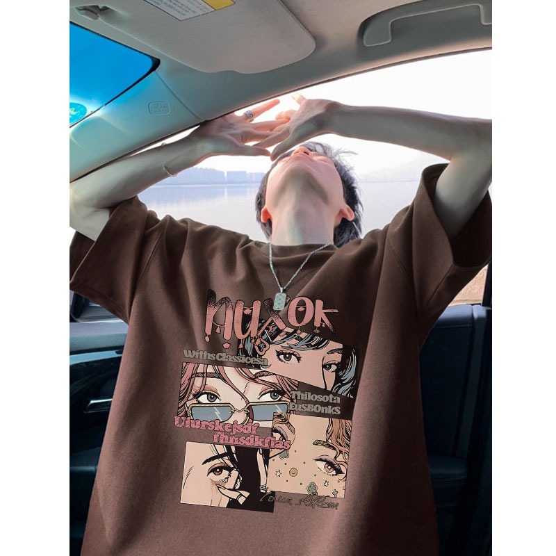 AUZY AUXOK Gaya Jepang Anime Pencetakan kaos pria wanita atasan Lengan Pendek T-shirt skena baju oversize t shirt distro original 100 PERSEN 6.5