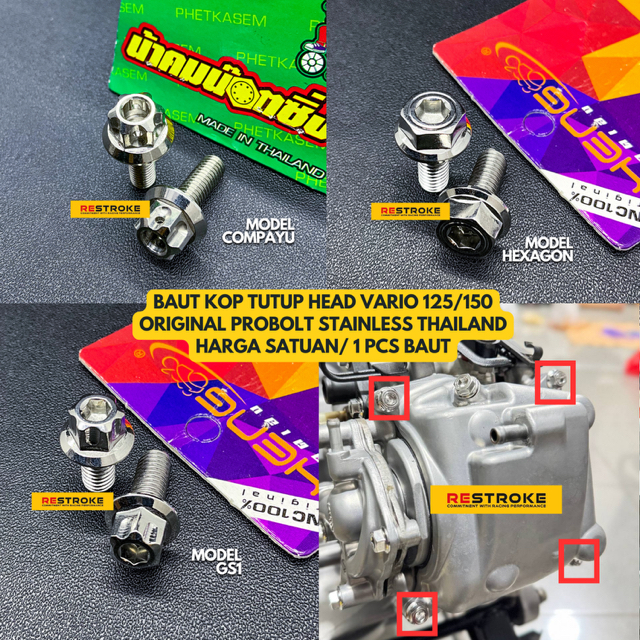 BAUT PROBOLT VARIO BAUT KOP TUTUP COVER HEAD VARIO 125 150 ORIGINAL HENG COMPAYU PROBOLT STAINLESS THAILAND BERKUALITAS