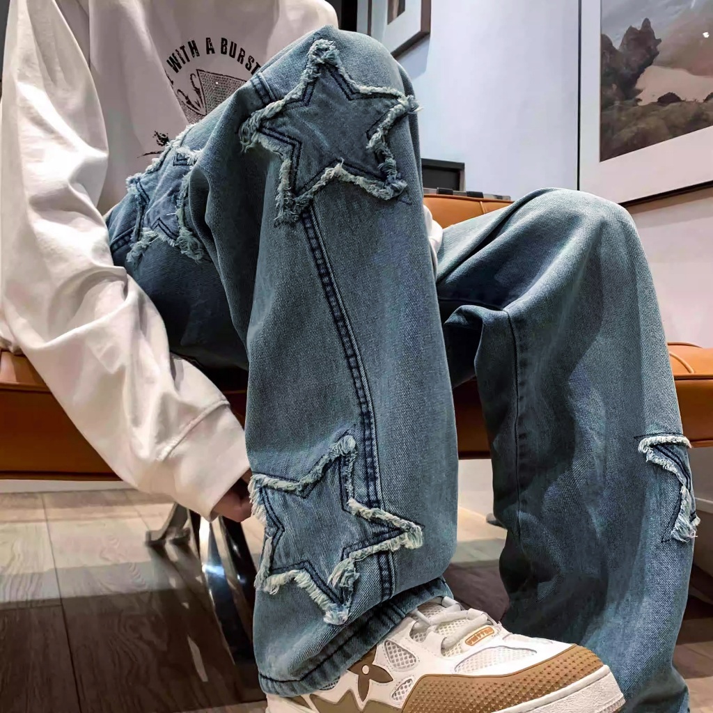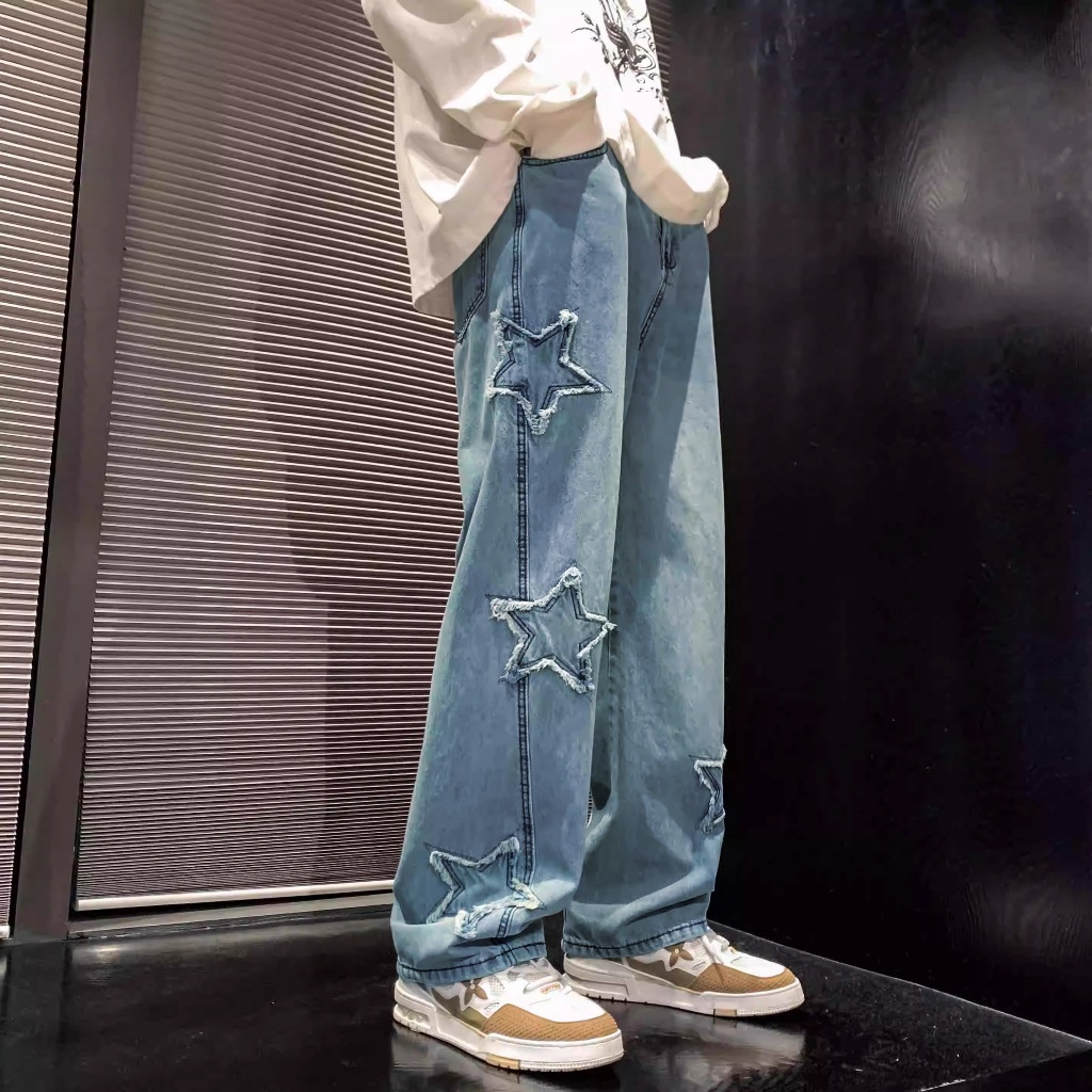 Tamp-X Oversize Skena Celana Jeans Pria Baggy Denim Jumbo Loose Jeans Korean Style Straight Retro Biru