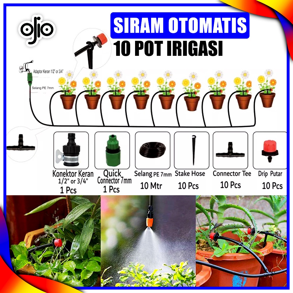 Penyiram Otomatis Irigasi Tetes Ojio Paket Hidroponik 10 Pot Tanaman