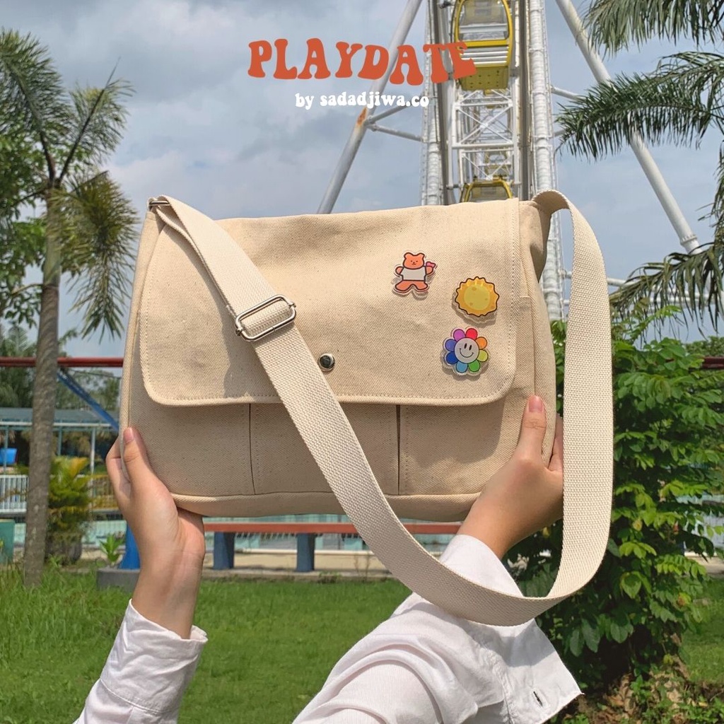 Sadadjiwa.co - PLAYDATE - Tas Wanita - Sling Bag - Tas Laptop - Tas Kuliah - Canvas