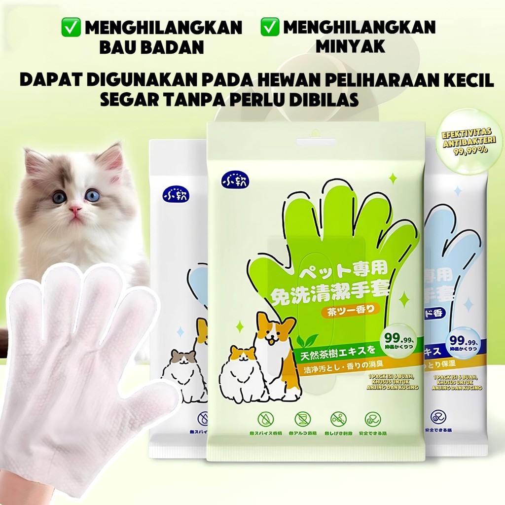 Tisu Basah Hewan Sarung Tangan Grooming Mandi Kucing Anjing Ready Stock