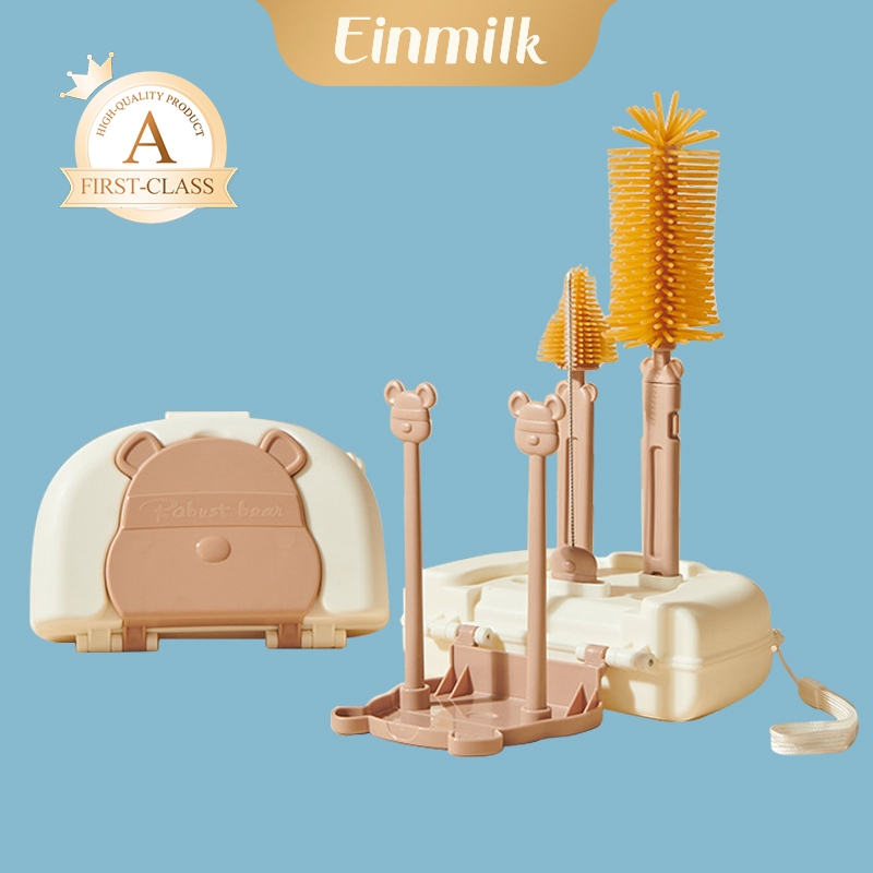 Set Sikat Botol Bayi Einmilk Dengan Rak Lipat Pengering Botol Portable