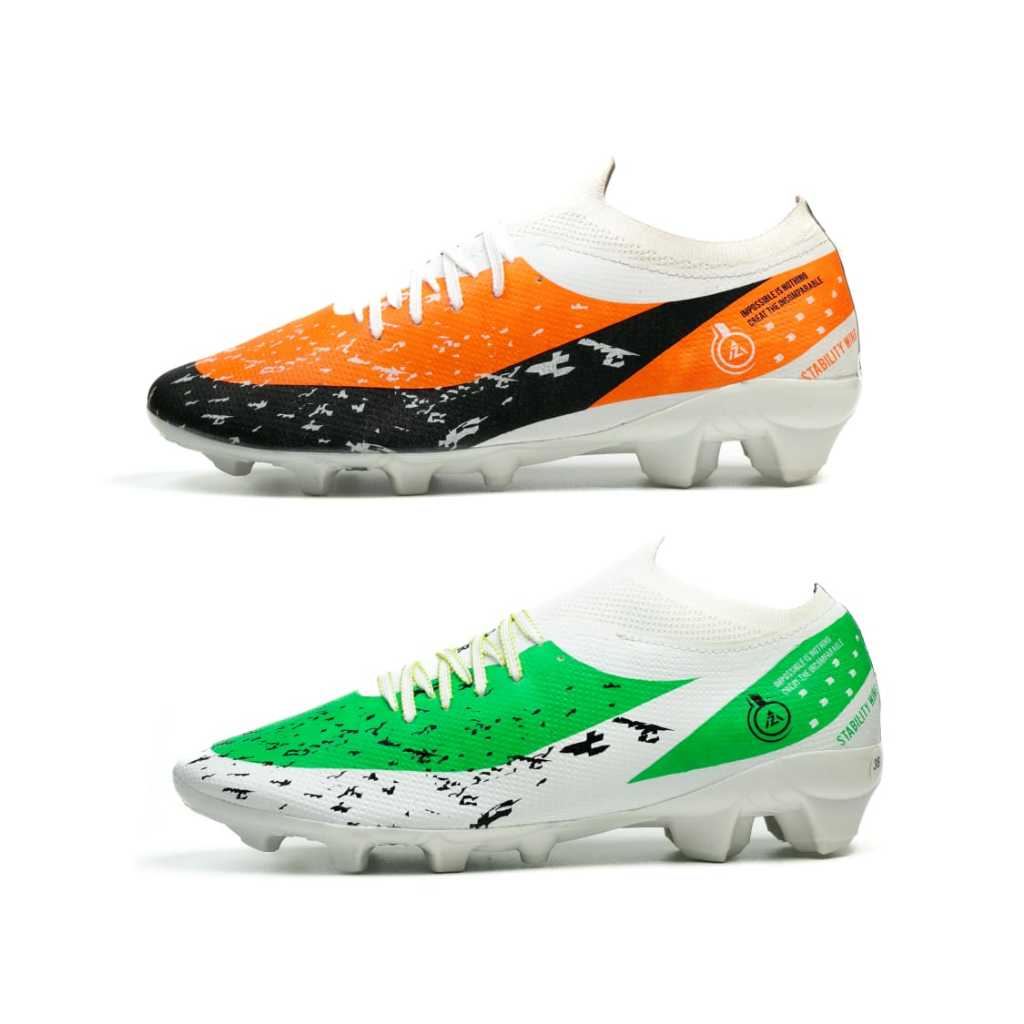 Sepatu Bola AZERO STABILITY Oren Hitam VS Hijau Putih Size 38-43