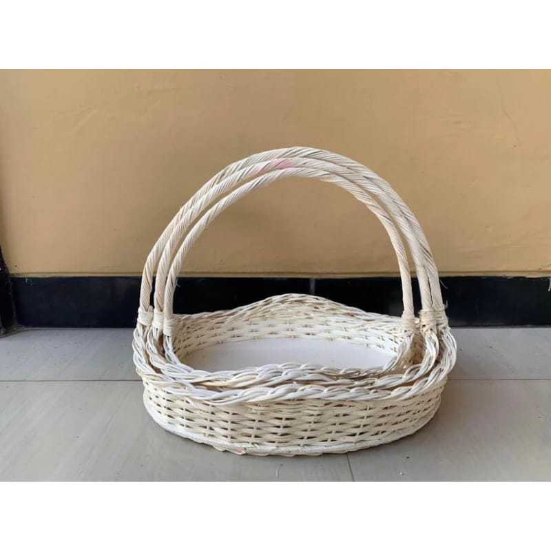 Keranjang Parcel Rotan Ombak Set 3 Pcs Baki Seserahan Buah Serbaguna