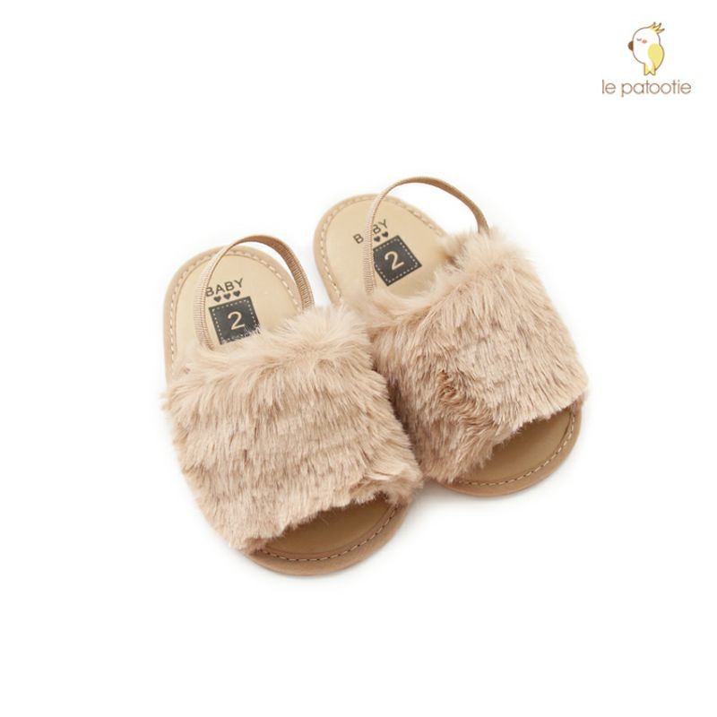 Sepatu Sandal Bayi Le Patootie Furry Beige Prewalker Perempuan 0-18 Bulan Lucu
