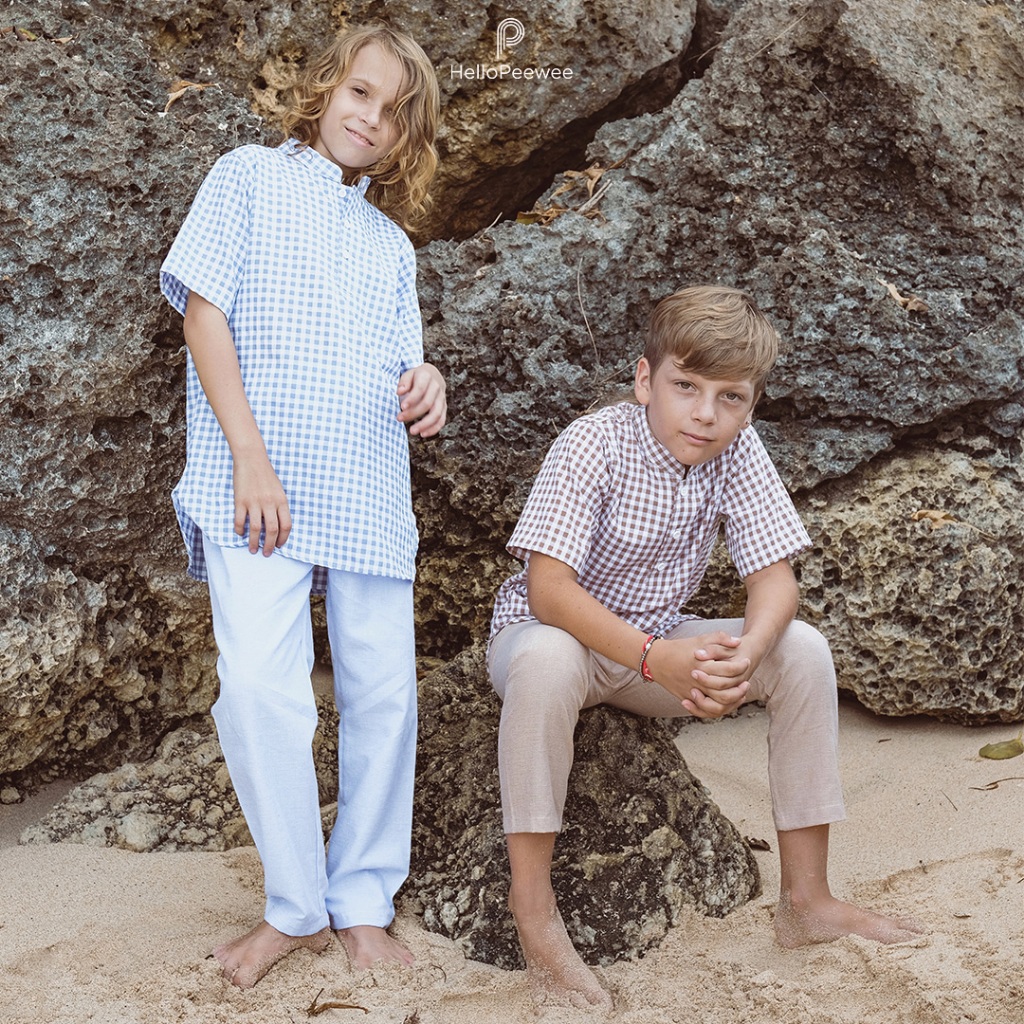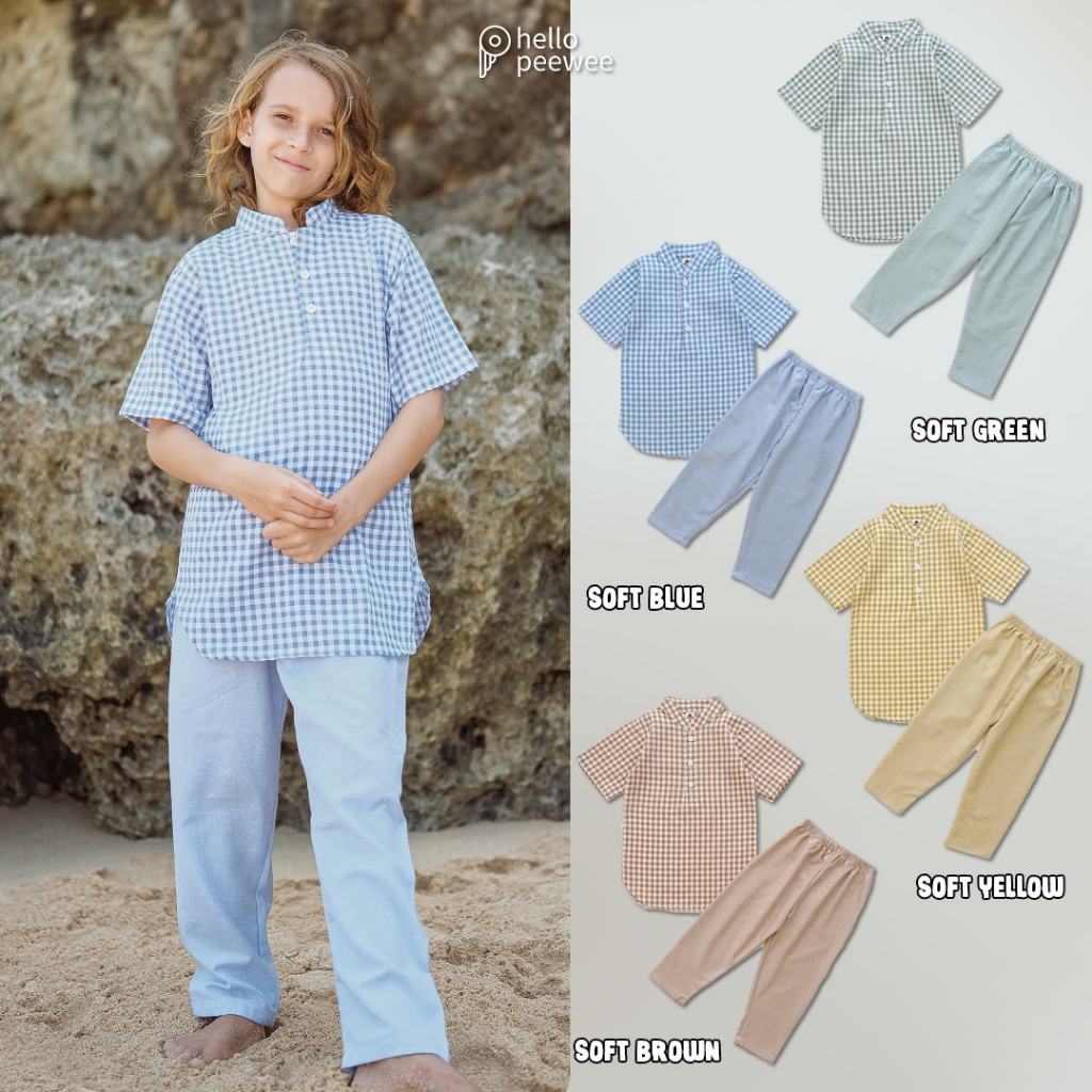 Setelan Koko Anak Peewee Kurta Kemko Kotak Gingham Usia 1-10 Tahun