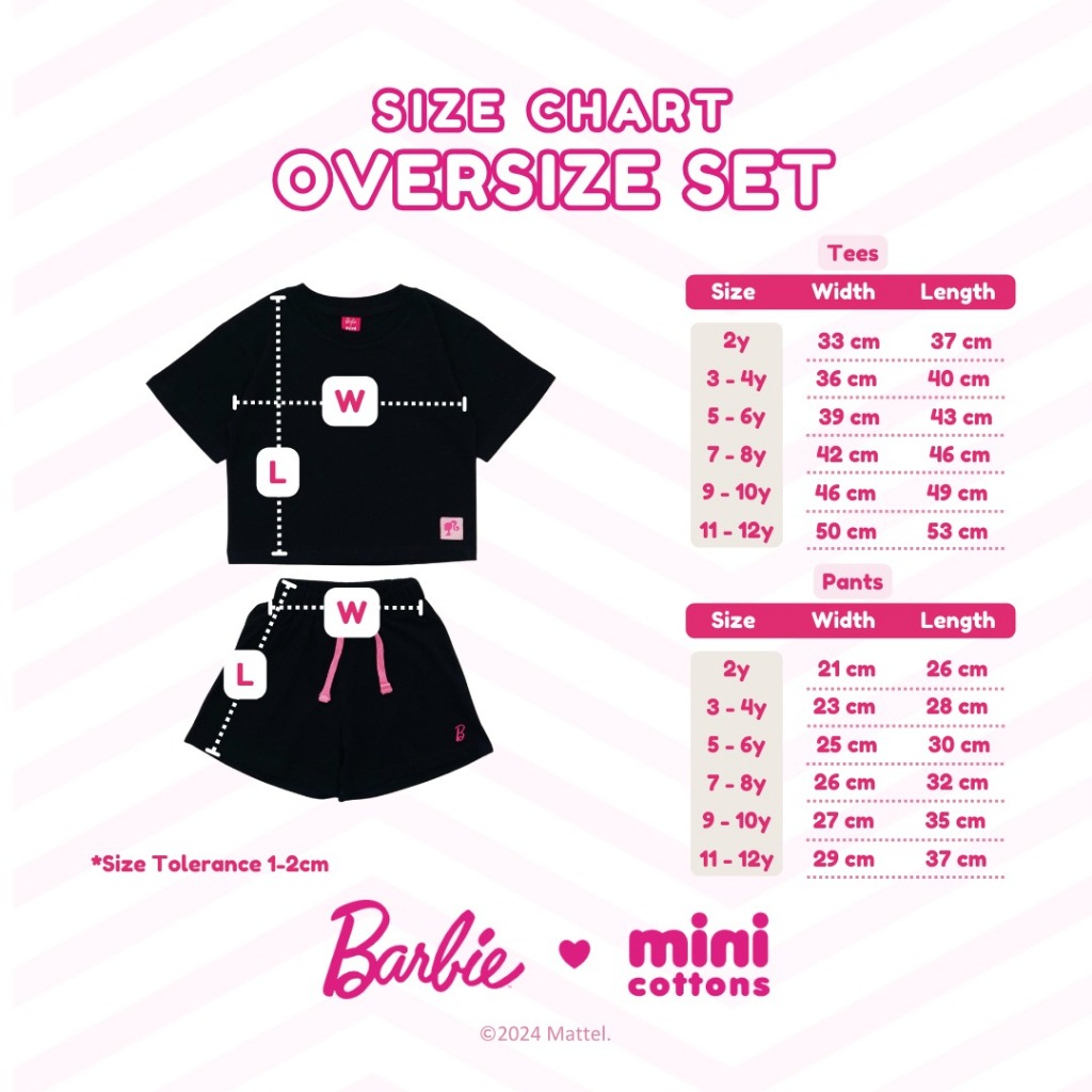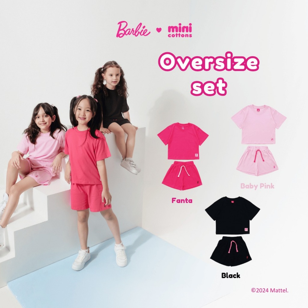 Setelan Anak Barbie Minicottons Oversize Perempuan Usia 2-12 Tahun Lucu Premium