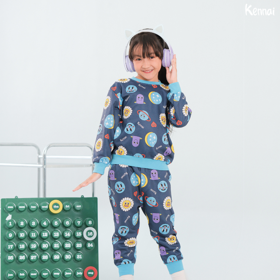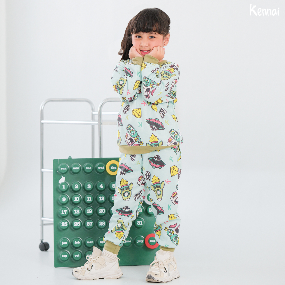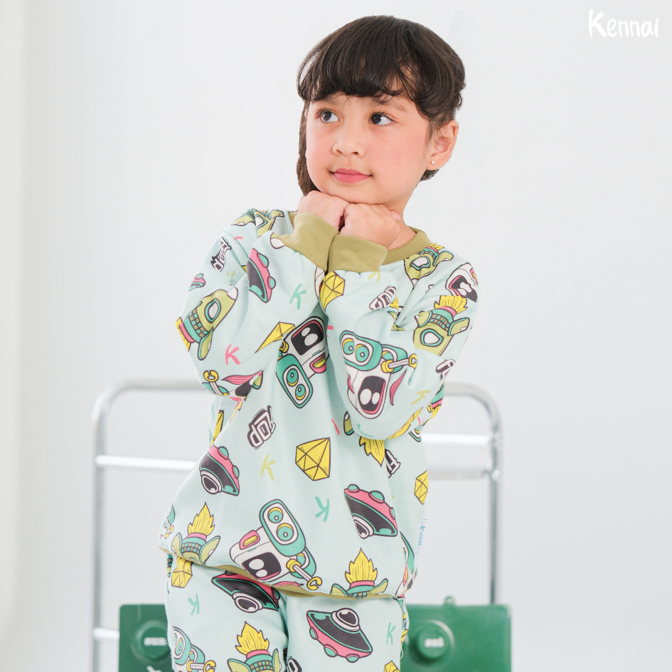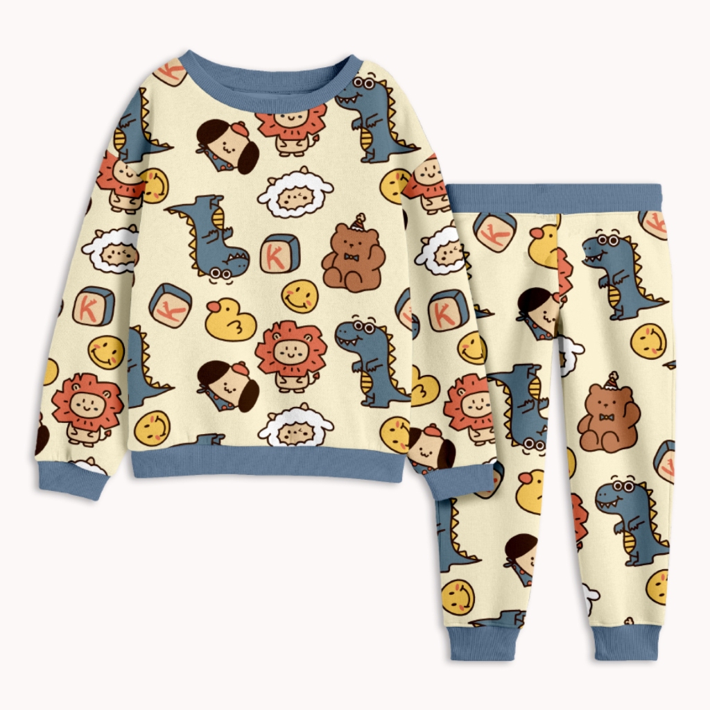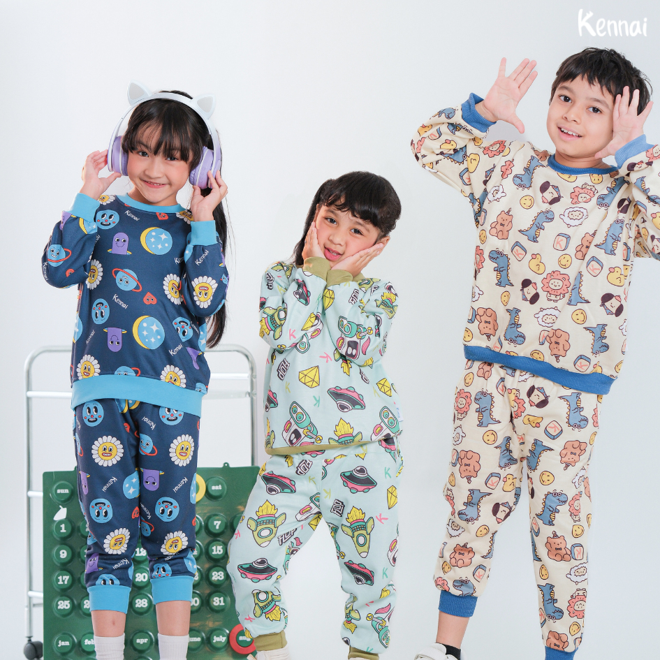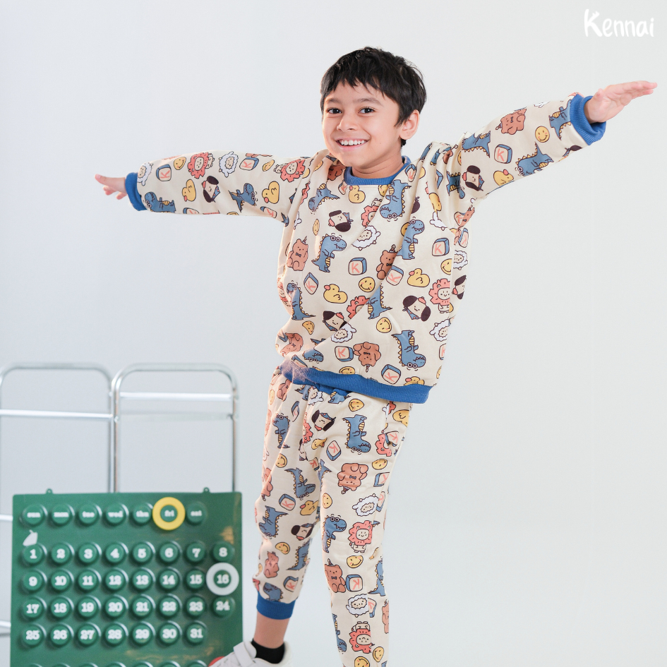 Setelan Baju Anak Kennai Crewneck Dino Terror Unisex Usia 1-13 Tahun