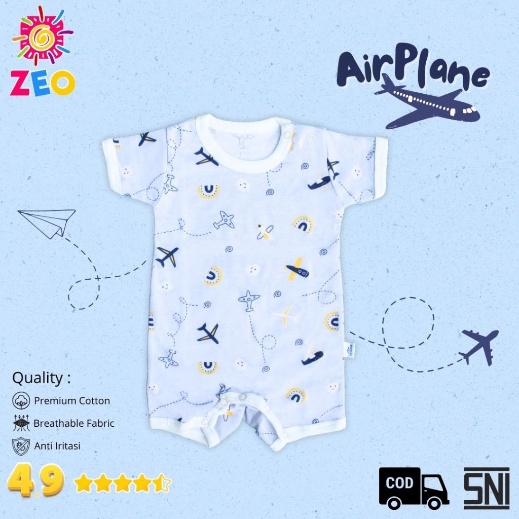Romper Bayi Zeobabykids Segiempat Pendek Katun Unisex 0-12 Bulan Rpd