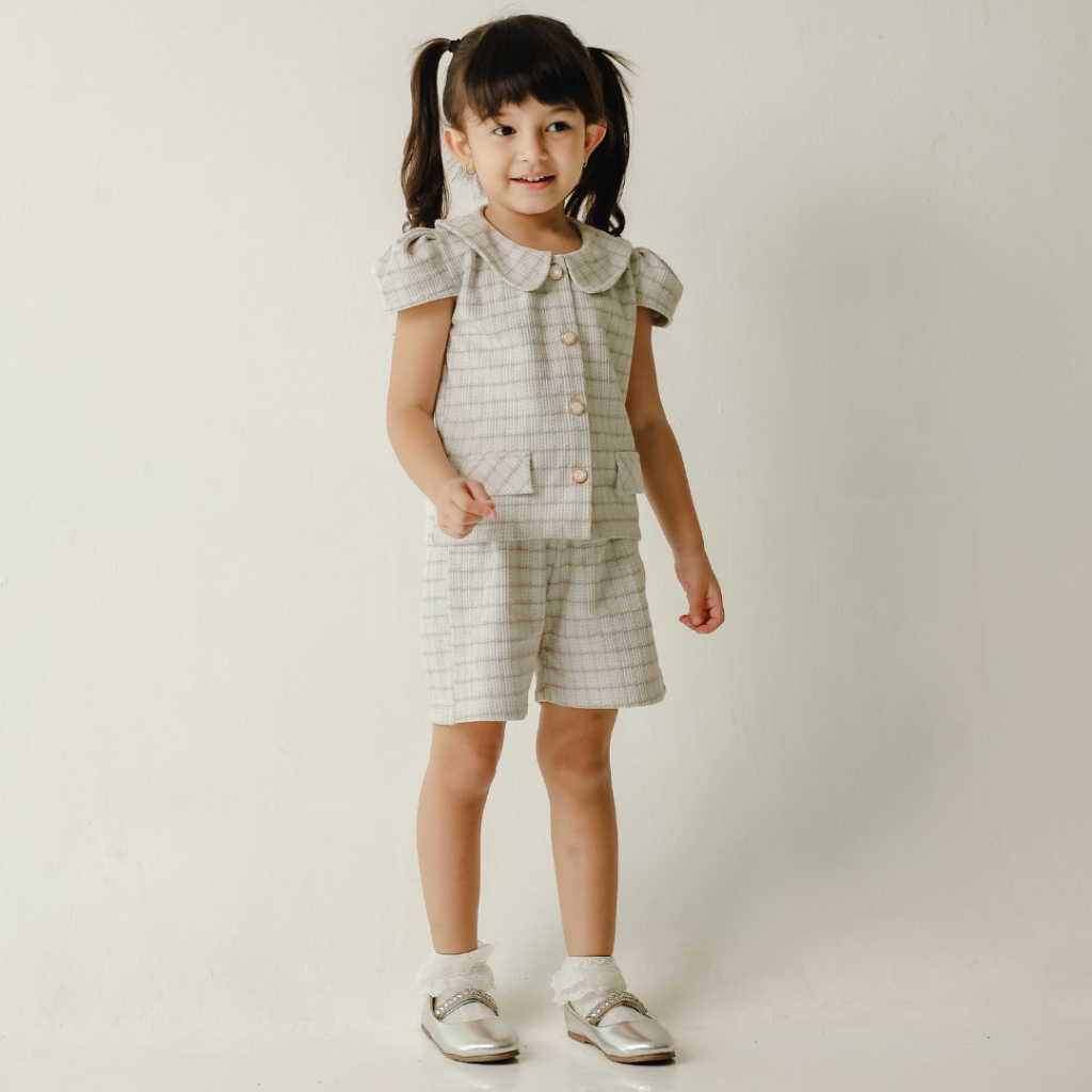 Setelan Anak Bell & Bo Vilda Baju Perempuan Tweed Premium Usia 1-4 Tahun