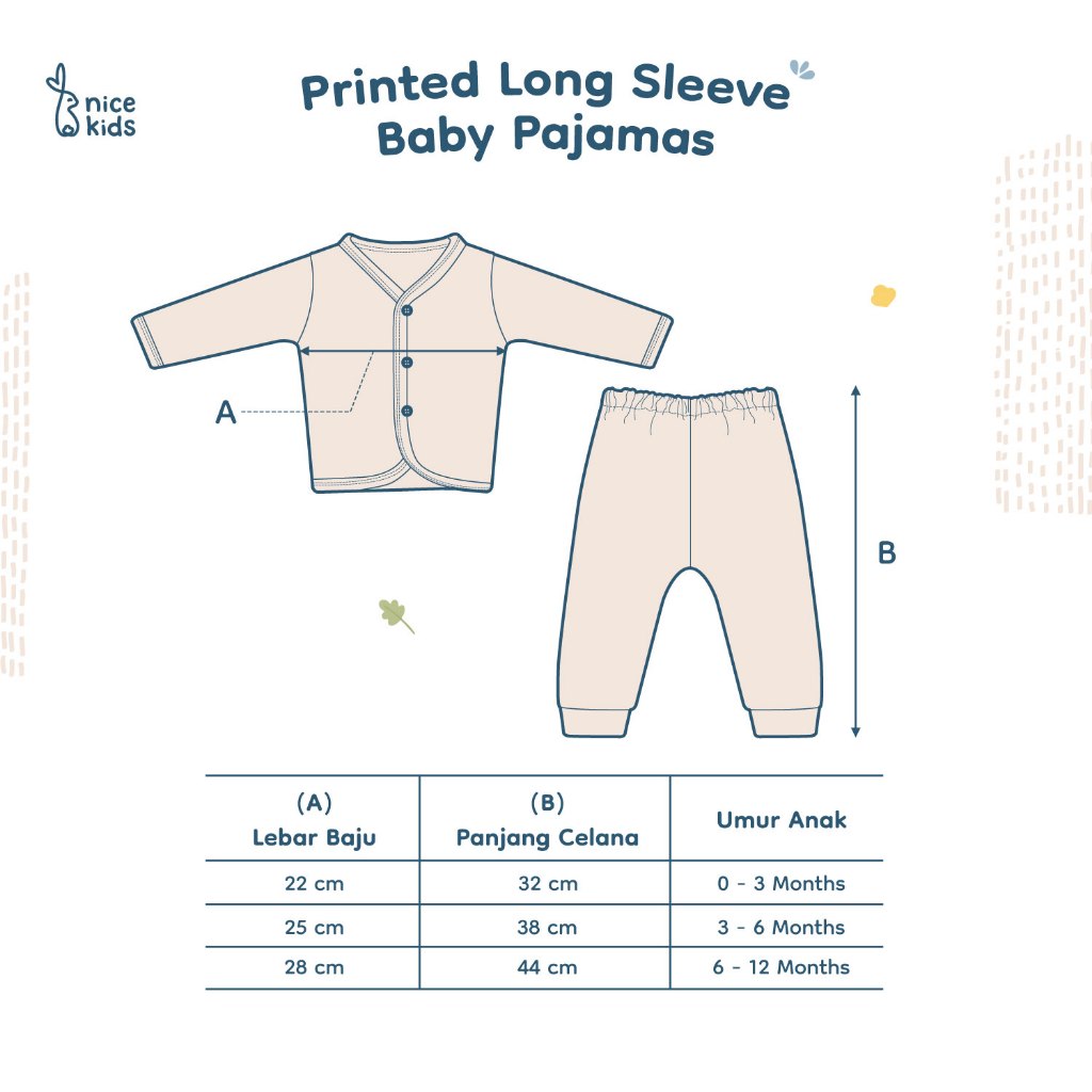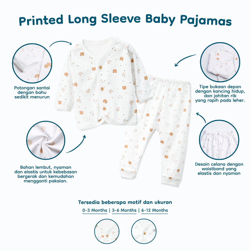 Piyama Bayi Nice Kids Bear Printed Set Lengan Panjang Motif Lucu Beruang