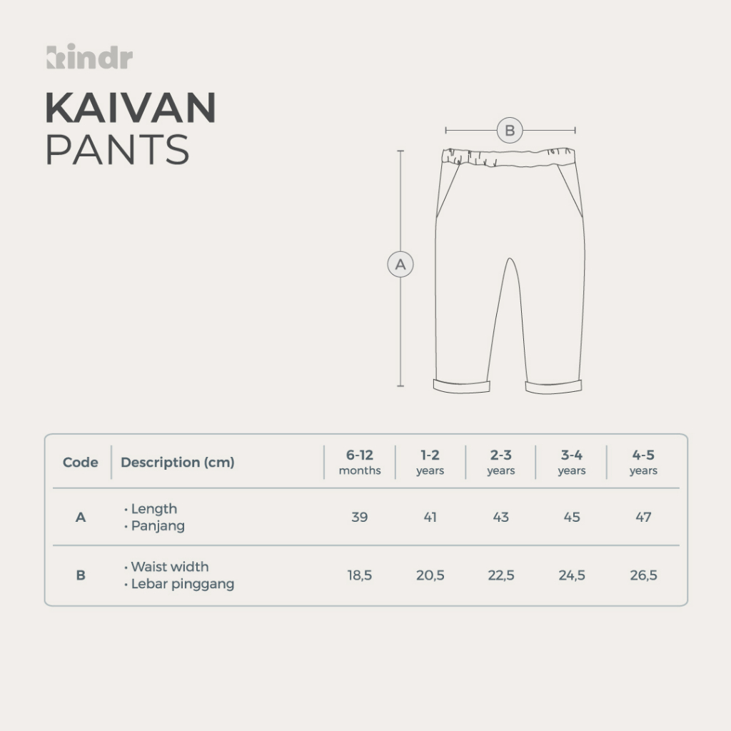 Celana Anak Kindr Kaivan Unisex Laki Laki Perempuan Usia 1-5 Tahun Adem