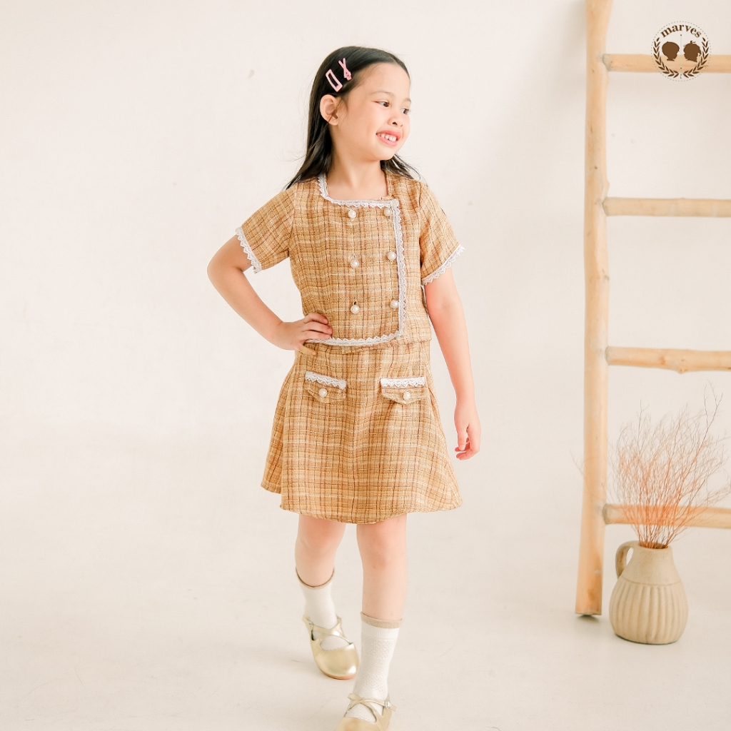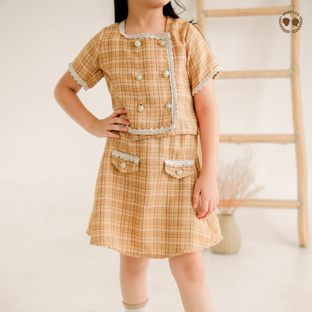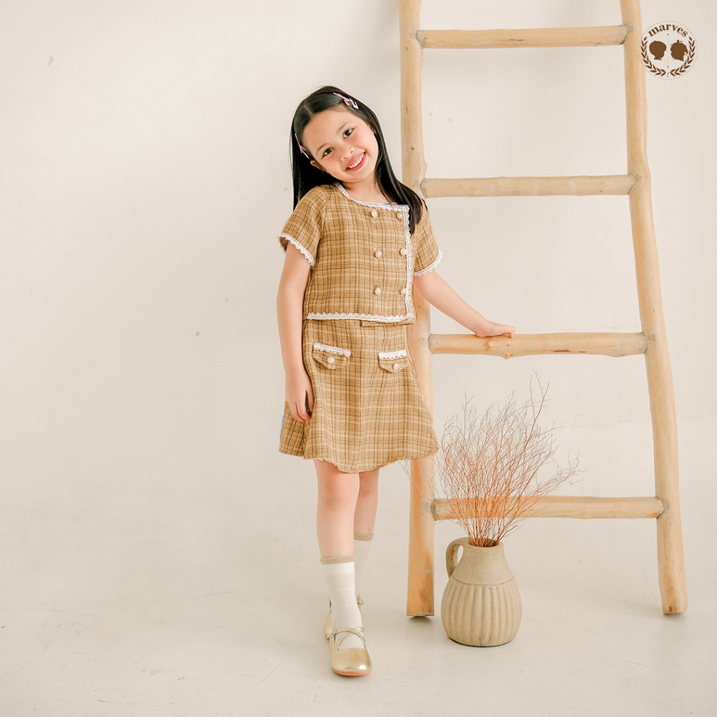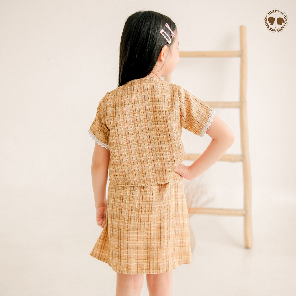 Setelan Rok Anak Marves Leora Korean Style Tweed Perempuan 2-14 Tahun Stylish