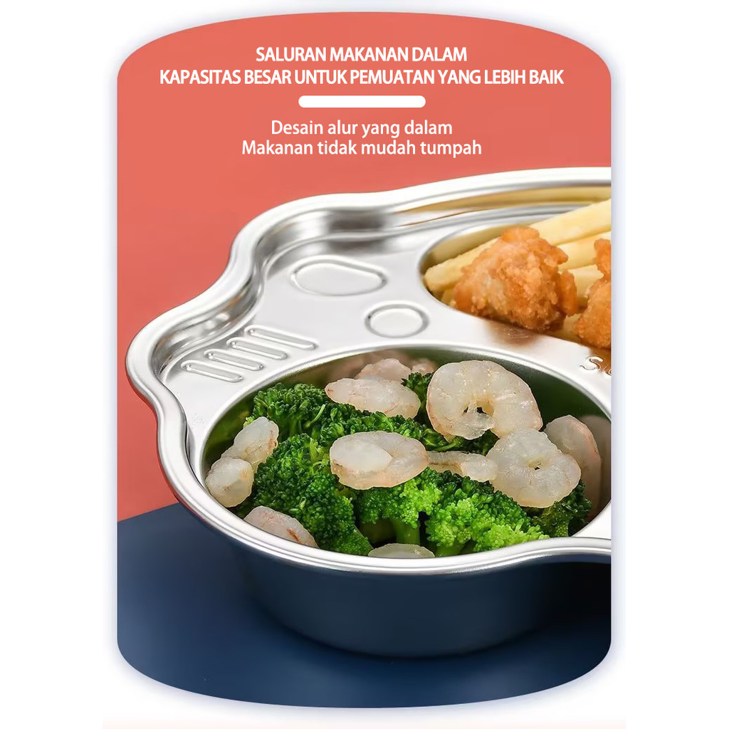Piring Makan Anak Mums Choice Sus 304 Stainless Steel Piring Sekat Premium