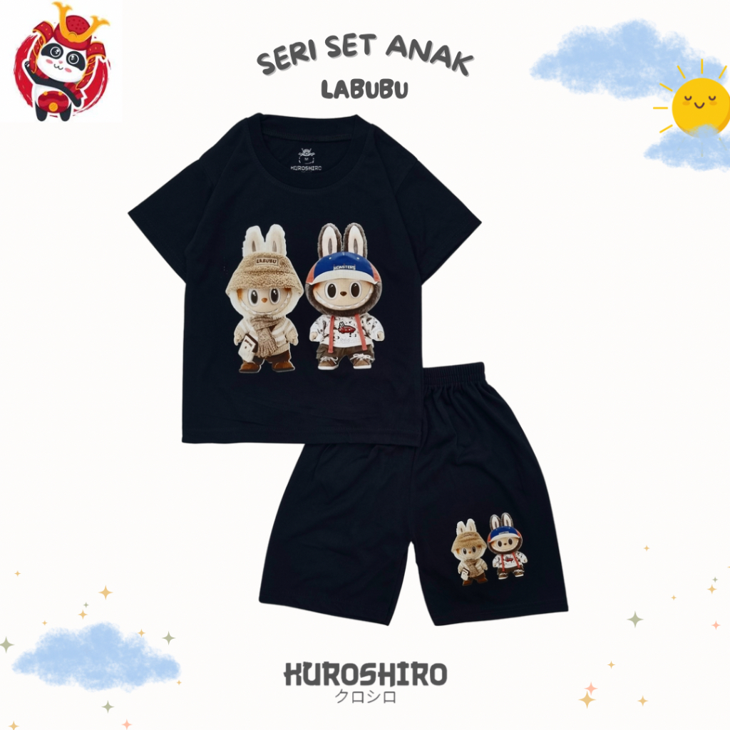 Setelan Anak Kuroshiro Labubu Kaos Laki Laki Baju Cowok Usia 1-9 Tahun