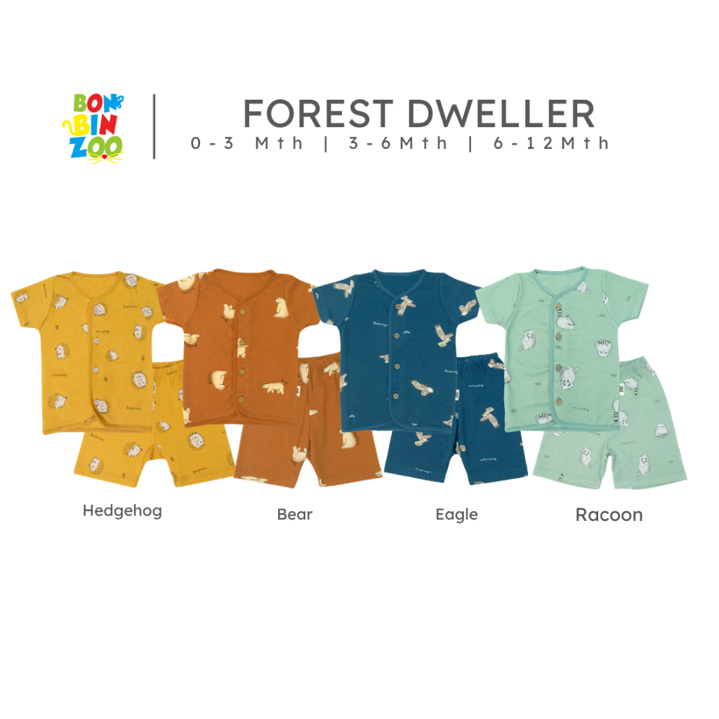 Setelan Bayi Bonbinzoo Forest Dweller Celana Pendek Baju Kancing Depan