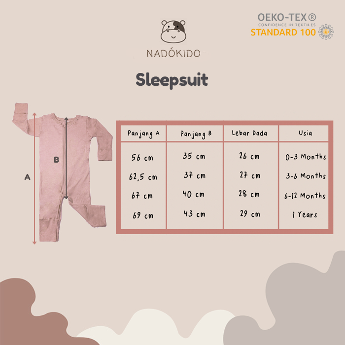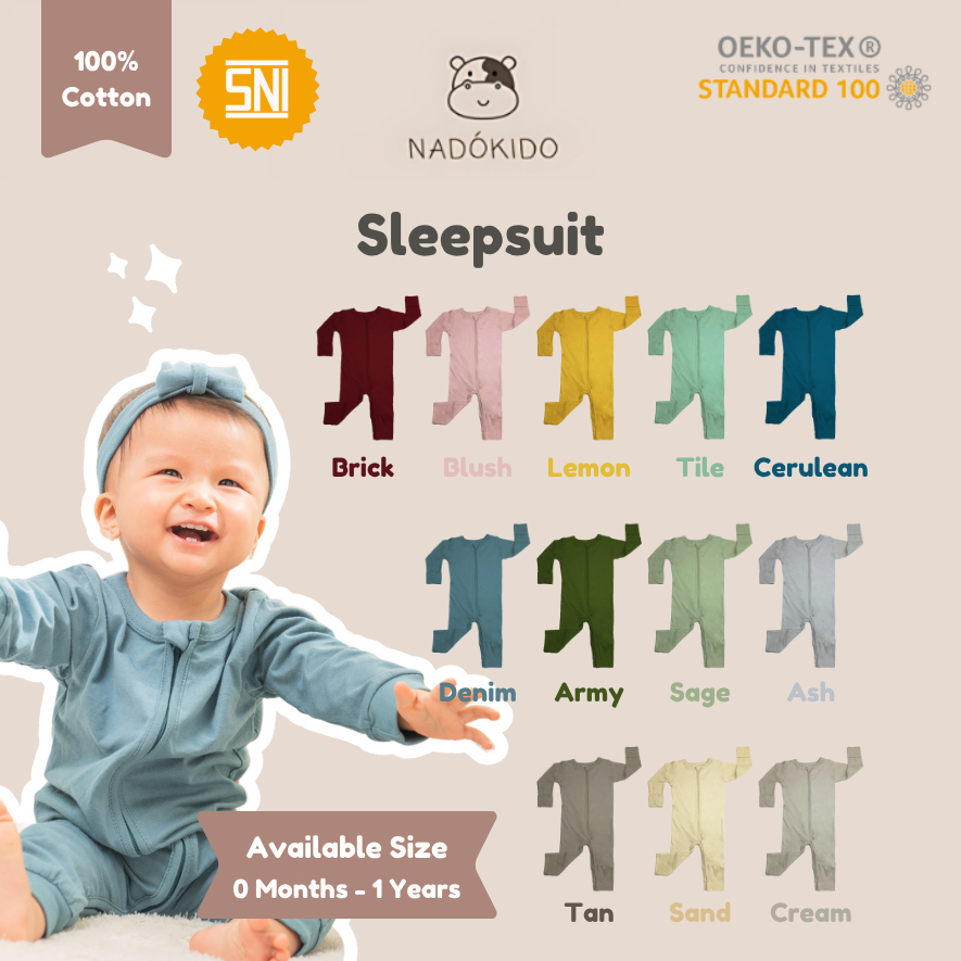 Piyama Bayi Nadokido Sleep Suit Sleepsuit Polos Unisex 0-1 Tahun Nyaman