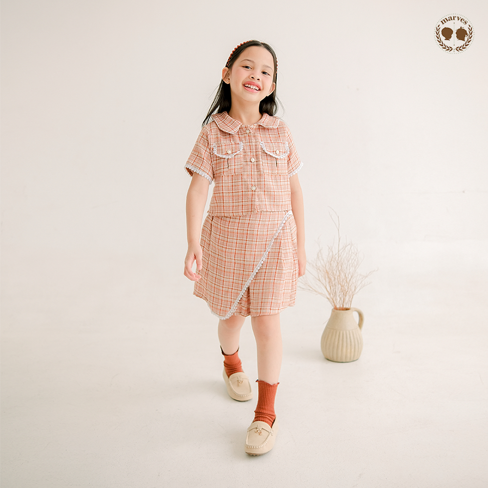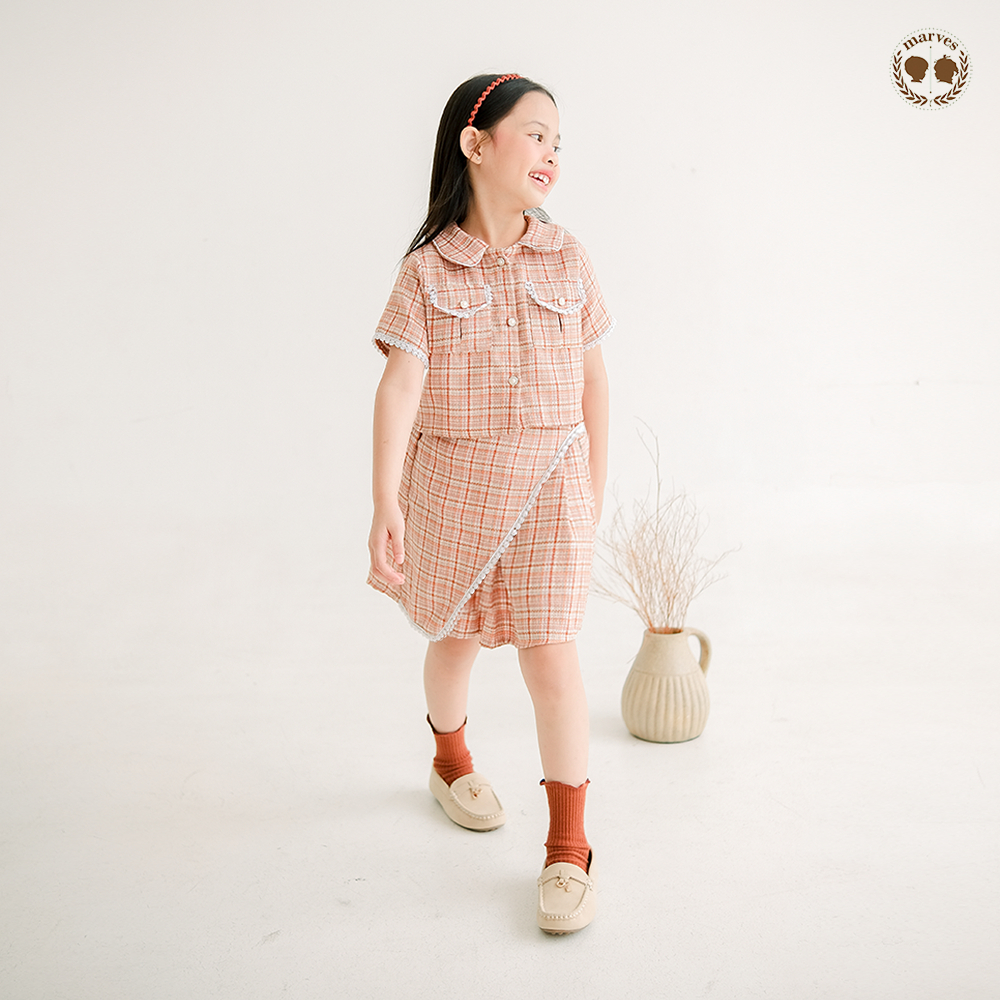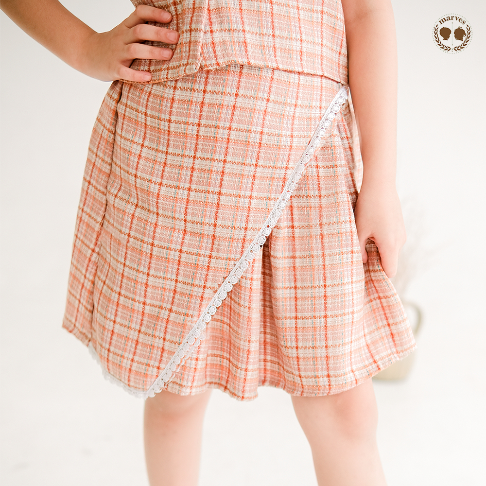 Setelan Rok Anak Marves Kayle Korean Style Tweed Perempuan 2-14 Tahun Modis