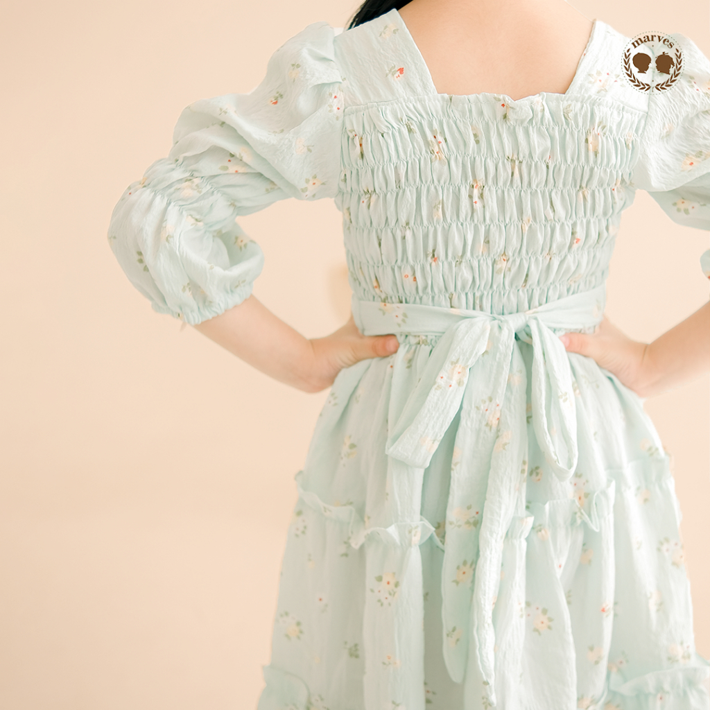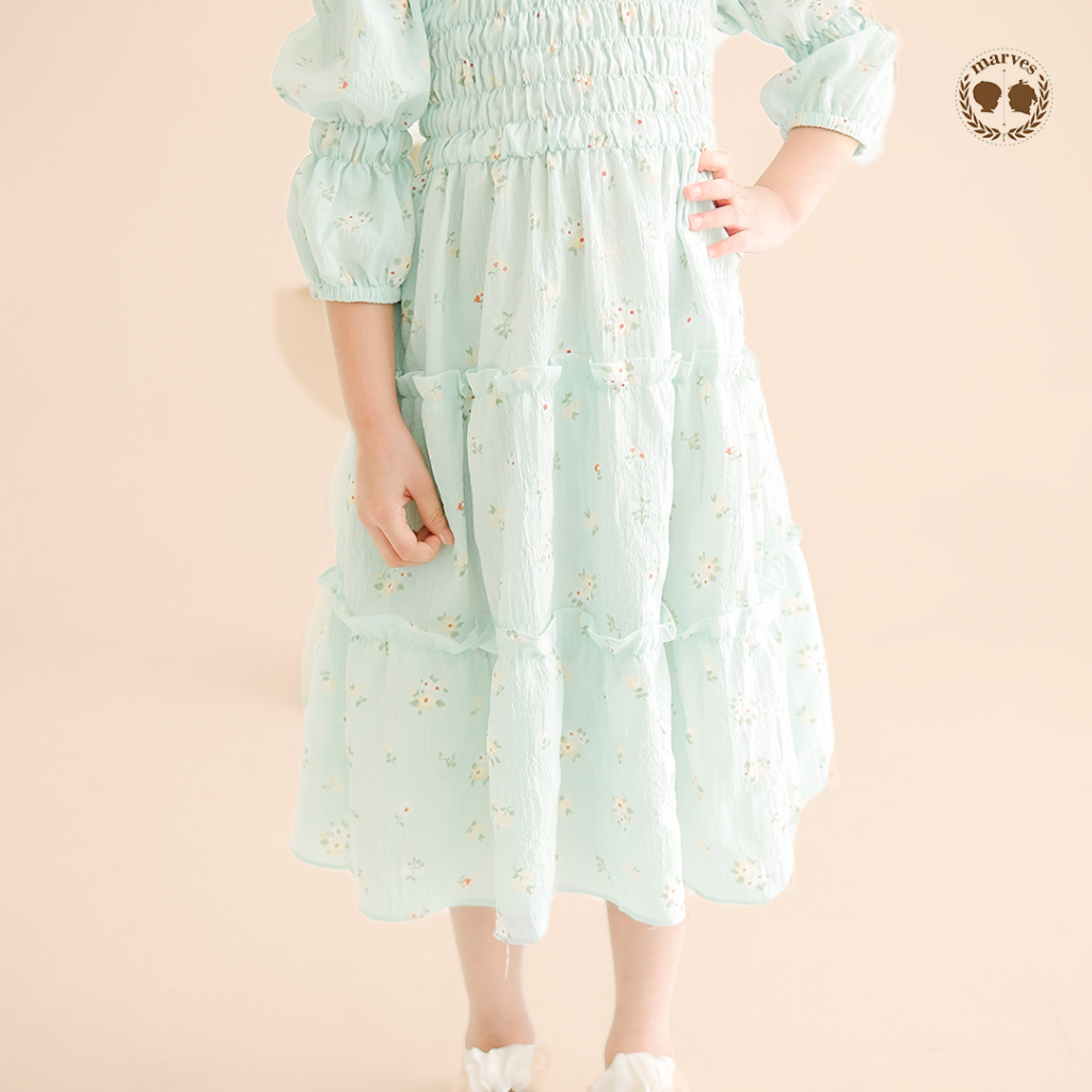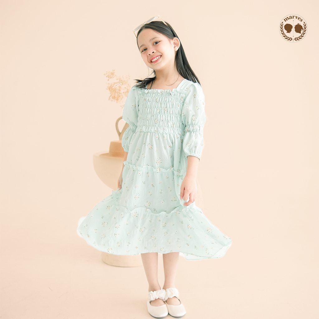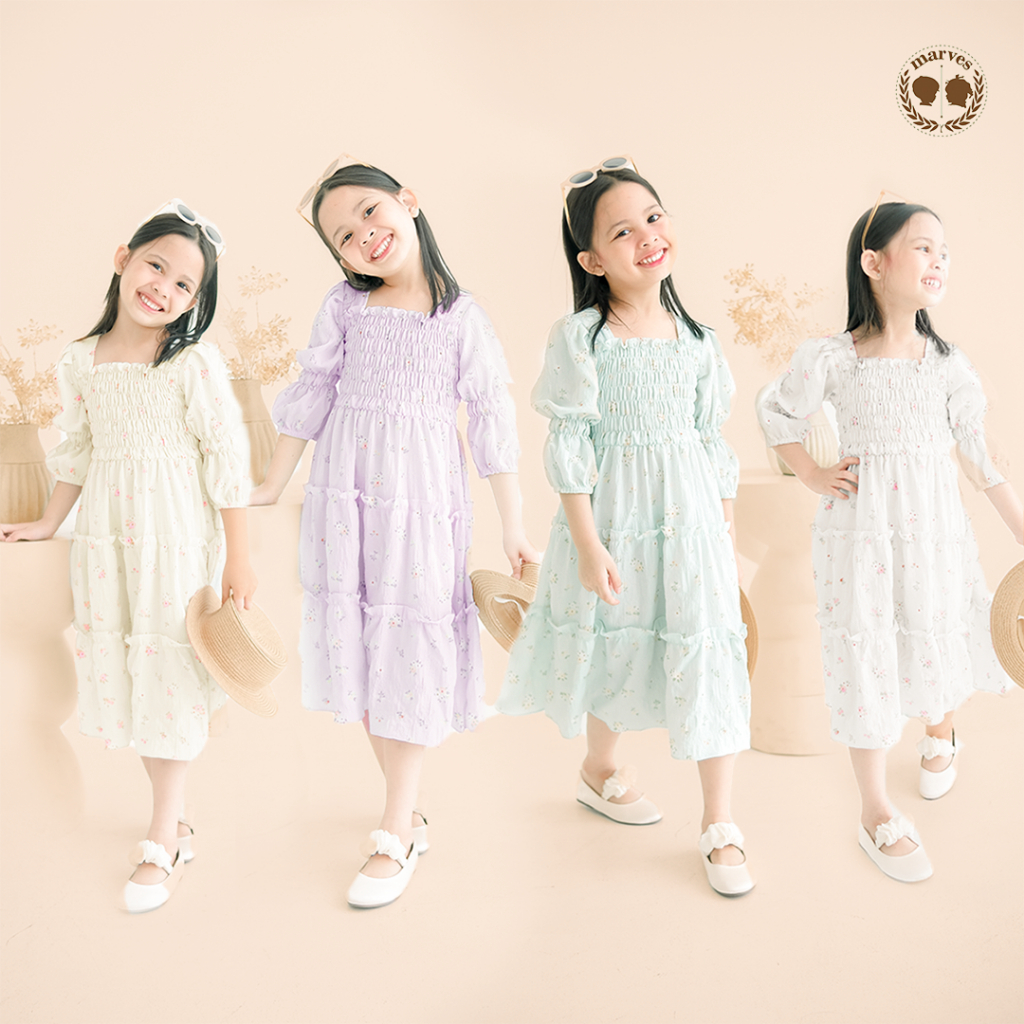Dress Anak Marves Shasa Korean Style Crinkle Motif Bunga Perempuan 2-14 Tahun
