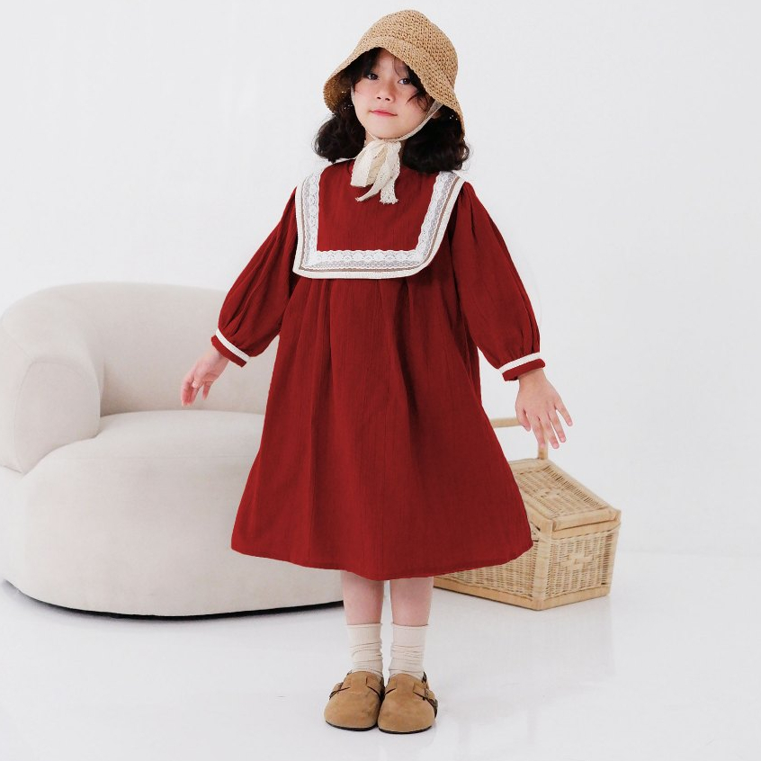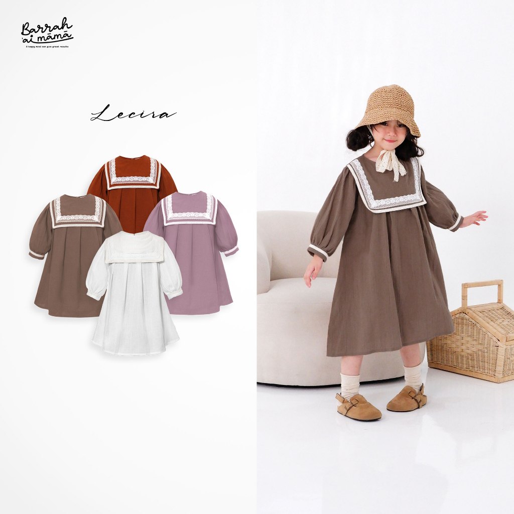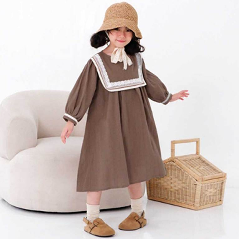 Dress Anak Barrahaimama Renda Brukat Vintage Lengan Panjang Katun Linen