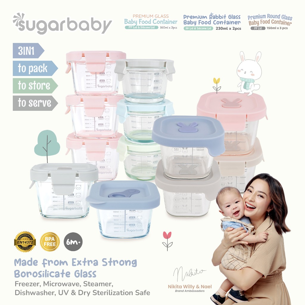 Wadah Makan Bayi Sugarbaby Premium Glass Jar 3 Pcs Silicone Lid Bpa Free