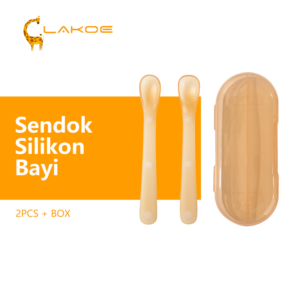 Sendok Makan Bayi Lakoeofficialmall Silicone 2 Pcs Bpa Free Dengan Box