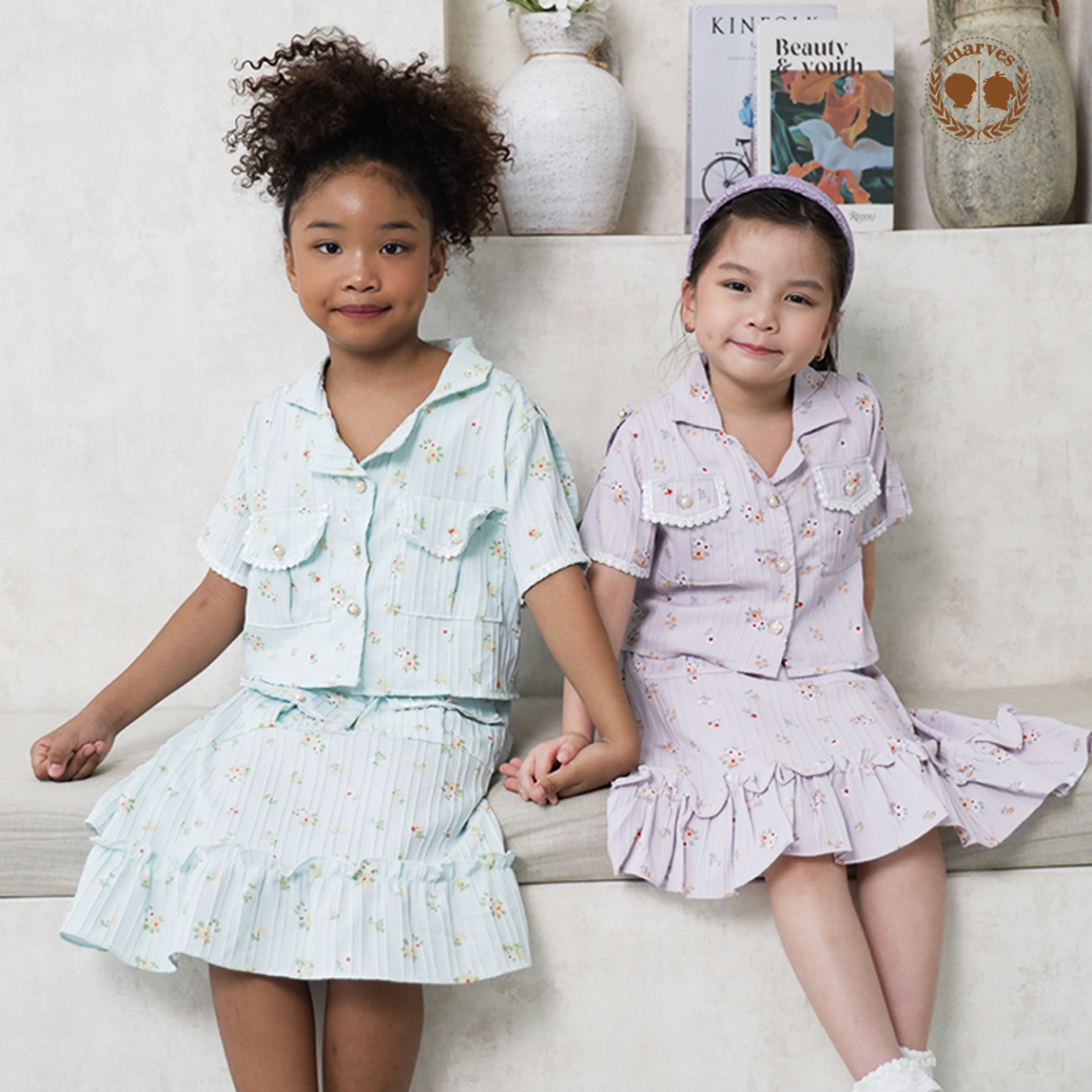 Setelan Rok Anak Marves Violet Korean Style Crinkle Perempuan 2-14 Tahun Anggun