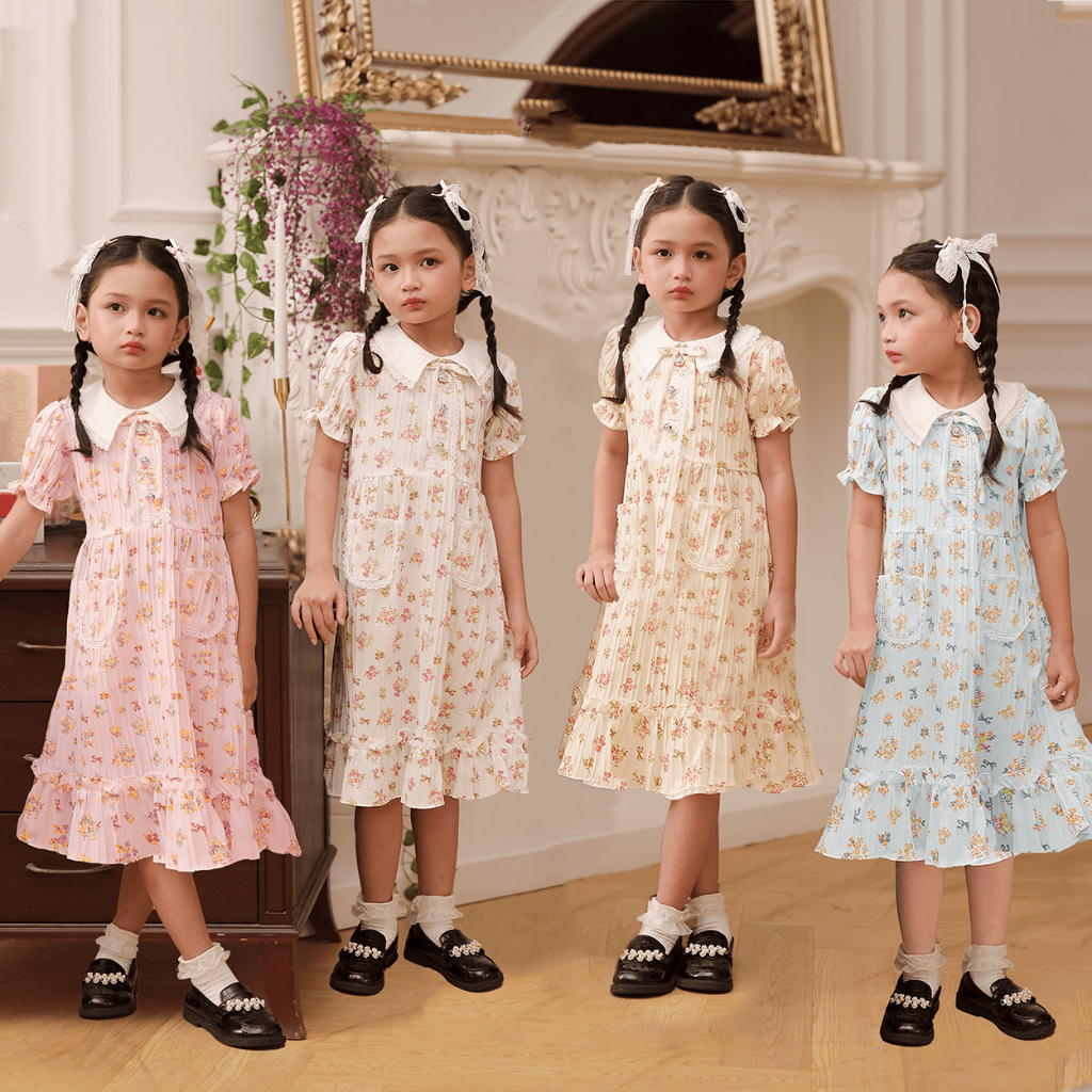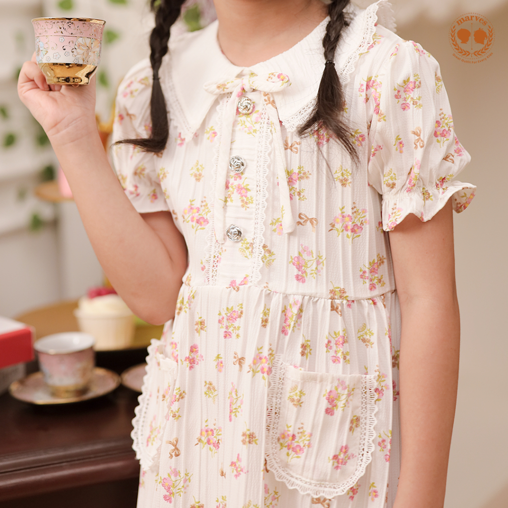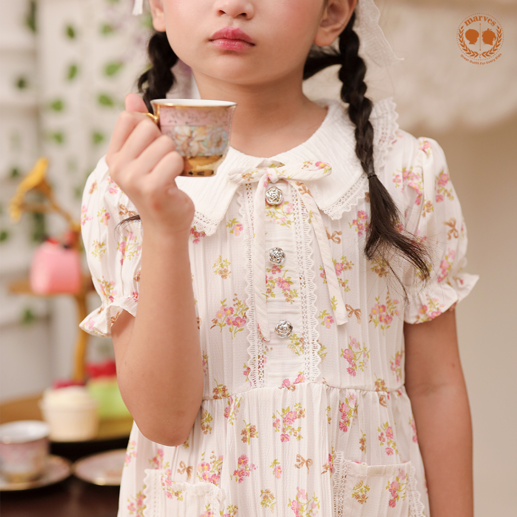 Dress Anak Marves Olivia Korean Style Crinkle Motif Bunga Perempuan 1-14 Tahun