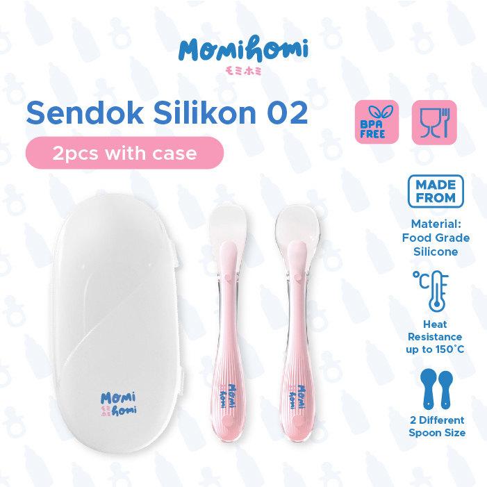 Sendok Makan Bayi Momi Homi 02 Silicone Isi 2 Pcs Bpa Free Lentur Tahan Panas