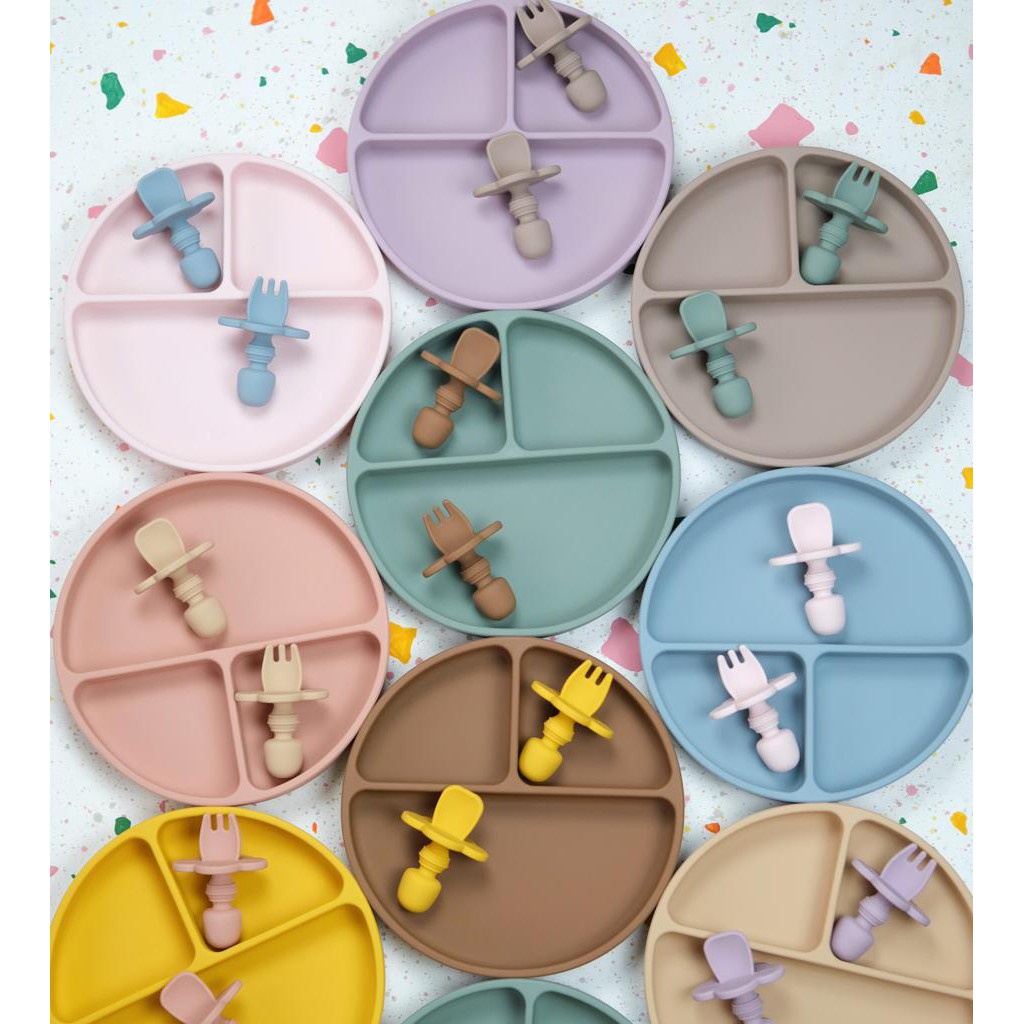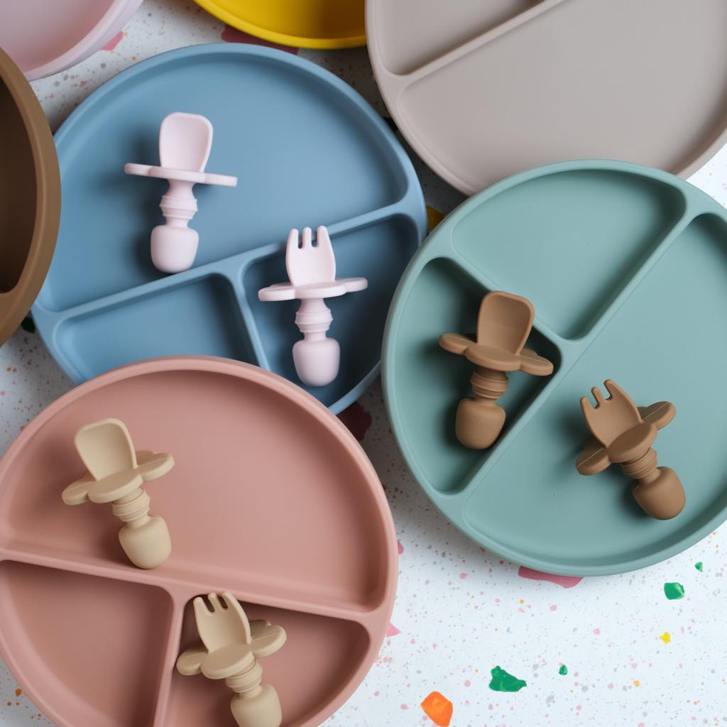 Piring Bayi Littlebebeshop Plate Silicone Suction Training Set Sendok Garpu