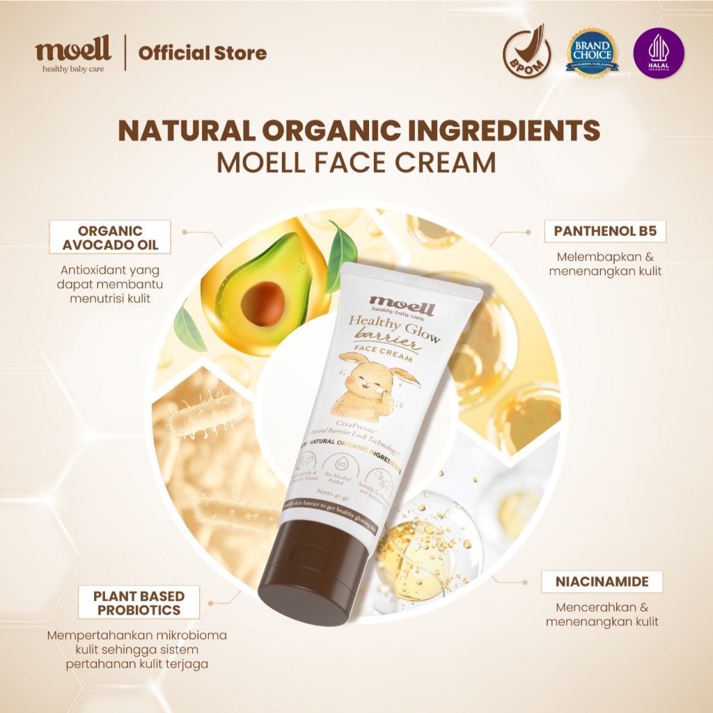 Face Cream Bayi Moell 40gr Plant Based Probiotics Panthenol Pelembap Sensitif