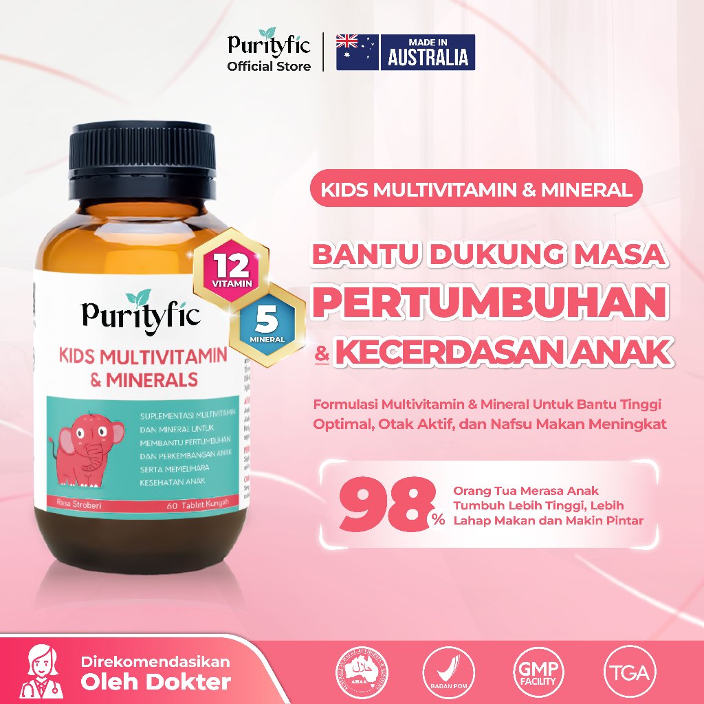 Multivitamin Anak Purityfic Official Kids Multivitamin Minerals Halal 60 Tablet Hisap